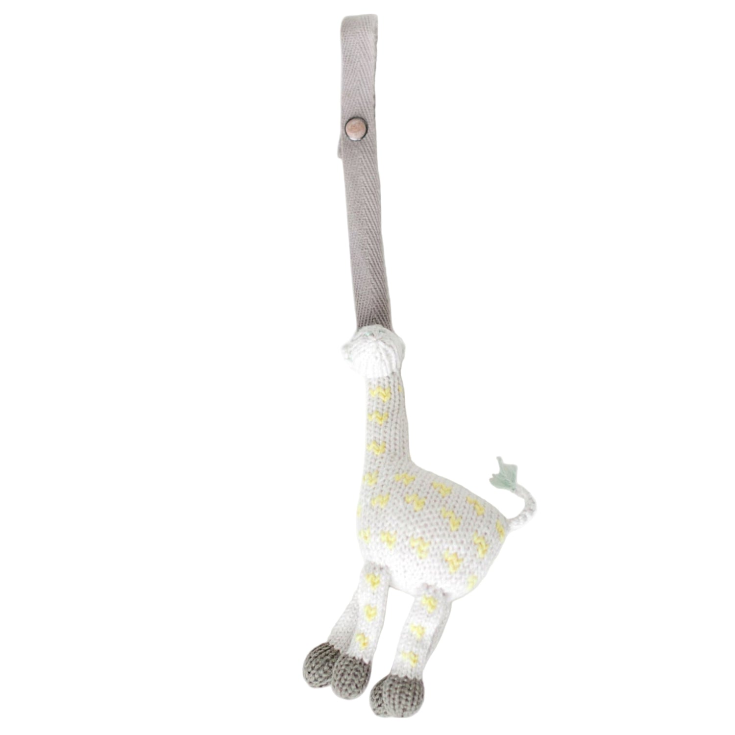 The knit toys were hand-knit at an artisanal women's collaborative in Peru using G.O.T.S. certified organic cotton yarn. Our stroller toys can be used on their own or attached to our "Play Gym".
