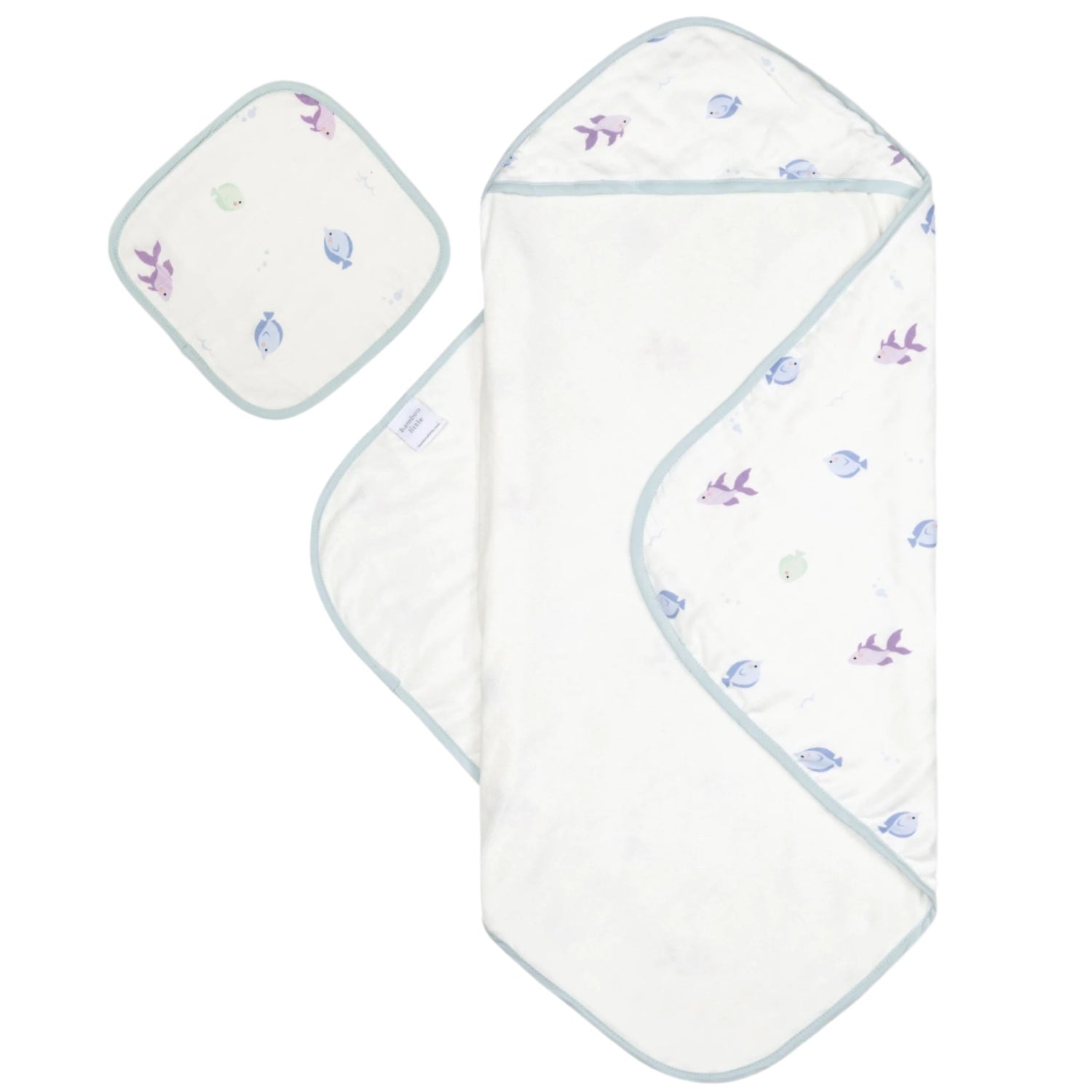 Bamboo Little's matching hooded towel and washcloth sets make bath time a joy. Each towel and washcloth features an ultra-absorbent and super-soft terry backing. The generously sized towels are perfect for babies with sensitive skin, offering natural moisture-wicking and odor-resistant properties, ensuring smiles long after the splashes are over.