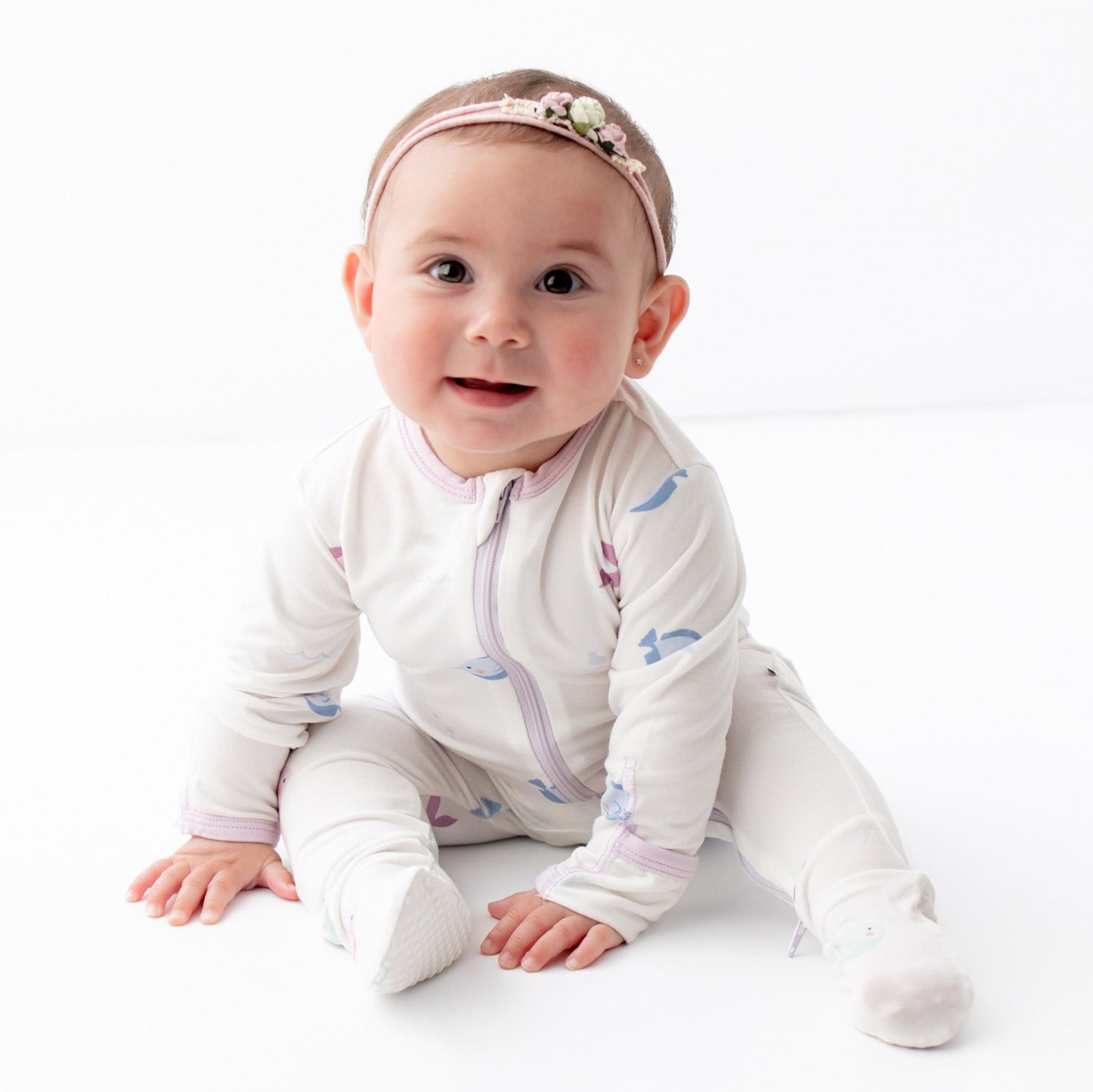 Lavender Fish Zippered Footie - 6-9M is backordered and will ship as soon as it is back in stock.