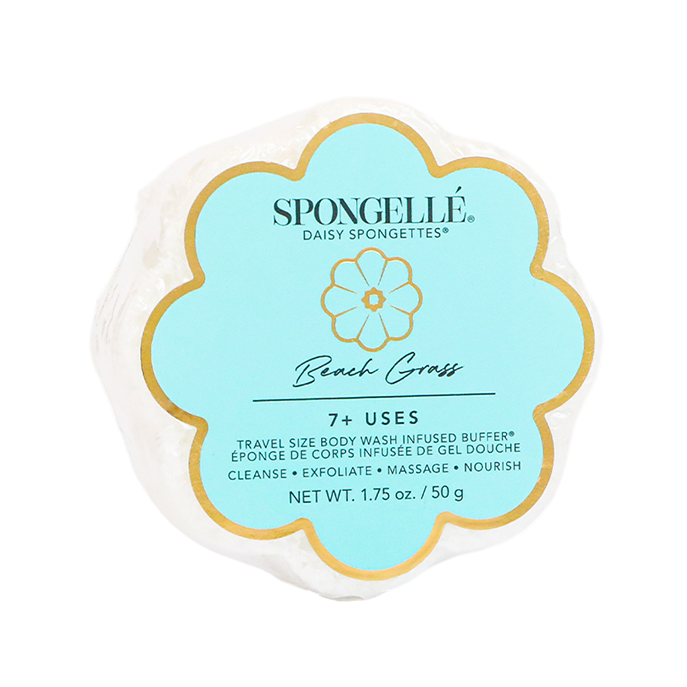 Our Beach Grass Spongette meets Daisy Collection’s signature flower design. Everything you love about our travel-friendly Spongette with the bonus of soft petal curves to enhance your cleansing experience. Treat yourself to the scent of carefree summers near the water and the sweet musk of your lover’s arm. Plus, our Spongette is accepted on all airlines making Beach Grass your go-to for warm hideaways and memorable excursions abroad.
