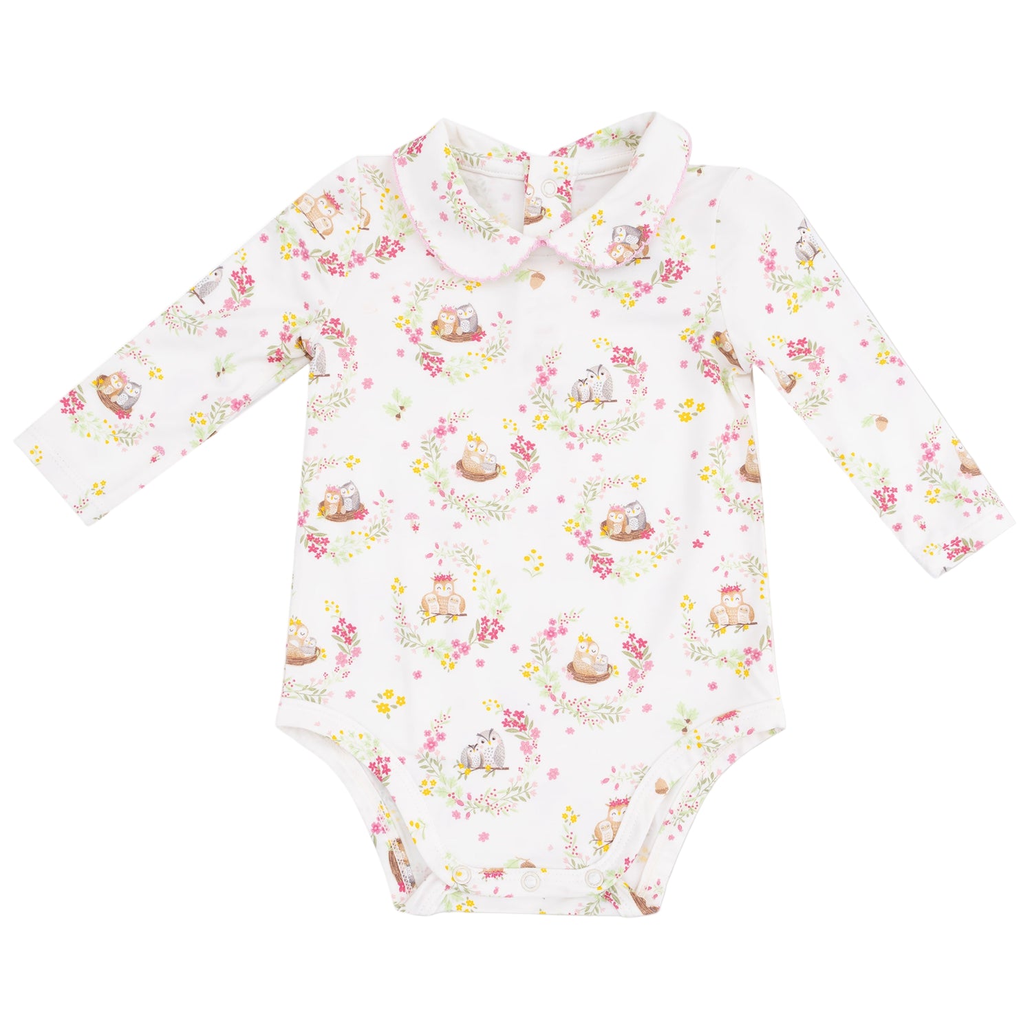 Peter Pan Collar Bodysuit - Floral Owl Families - HoneyBug
