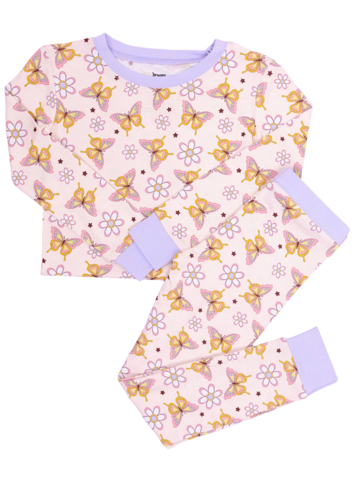 Get ready to drift off into a butterfly-filled dreamland with our Blossomin' Butterfly Dream Set! Featuring a charming butterfly print, this long sleeve set is perfect for a comfortable sleep and play experience. Made with bamboo material, it's soft and gentle on your skin. Sleep never looked so sweet!