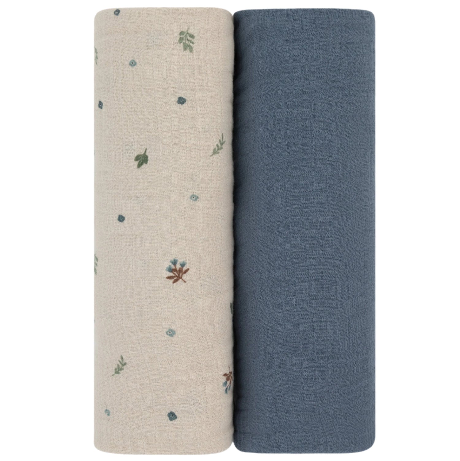 2 Pack Cotton Muslin Swaddle Blanket - Garden Flower - Blue