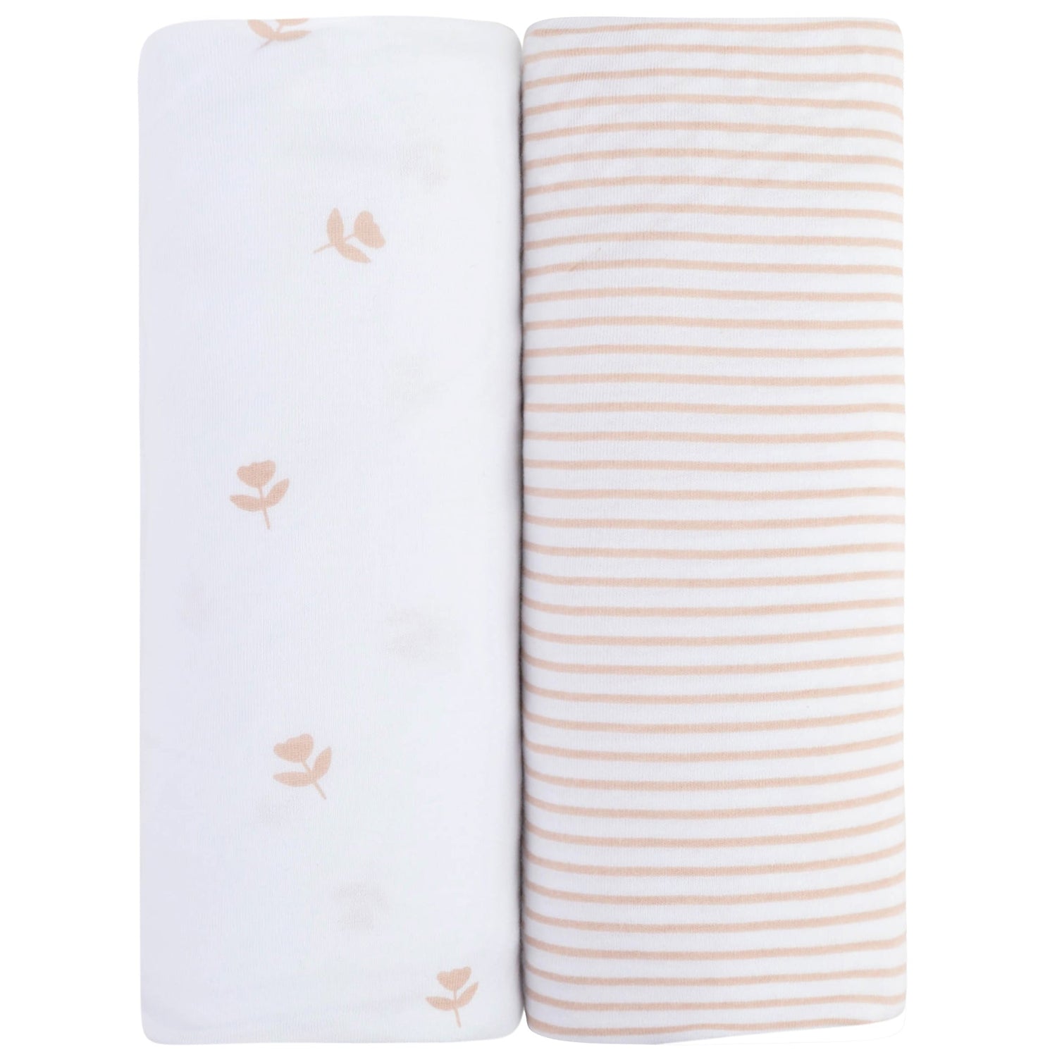 Pack N Play I Portable Crib Sheet Set - Mauve Tulip & Stripes