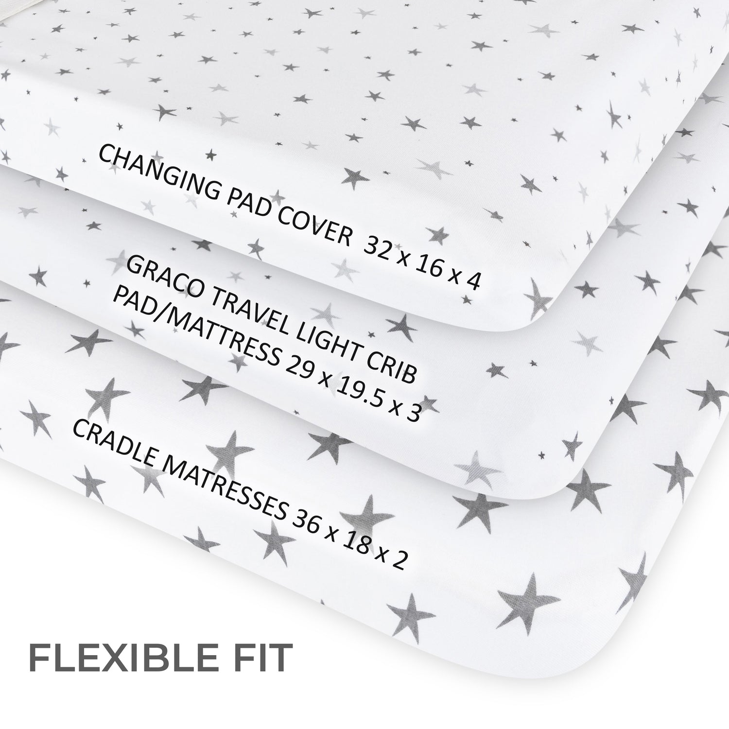 Perfect for Changing Pads and Cradles. Our universal fit allows most standard changing pads, as well as cradle mattresses size 36" x 18", to be snugly ensconced in our superior product. With a uniquely designed, flexible and generous elastic, our sheet set easily covers your mattress while simultaneously offering a tight seal, enabling a great fit on multiple sized mattresses.