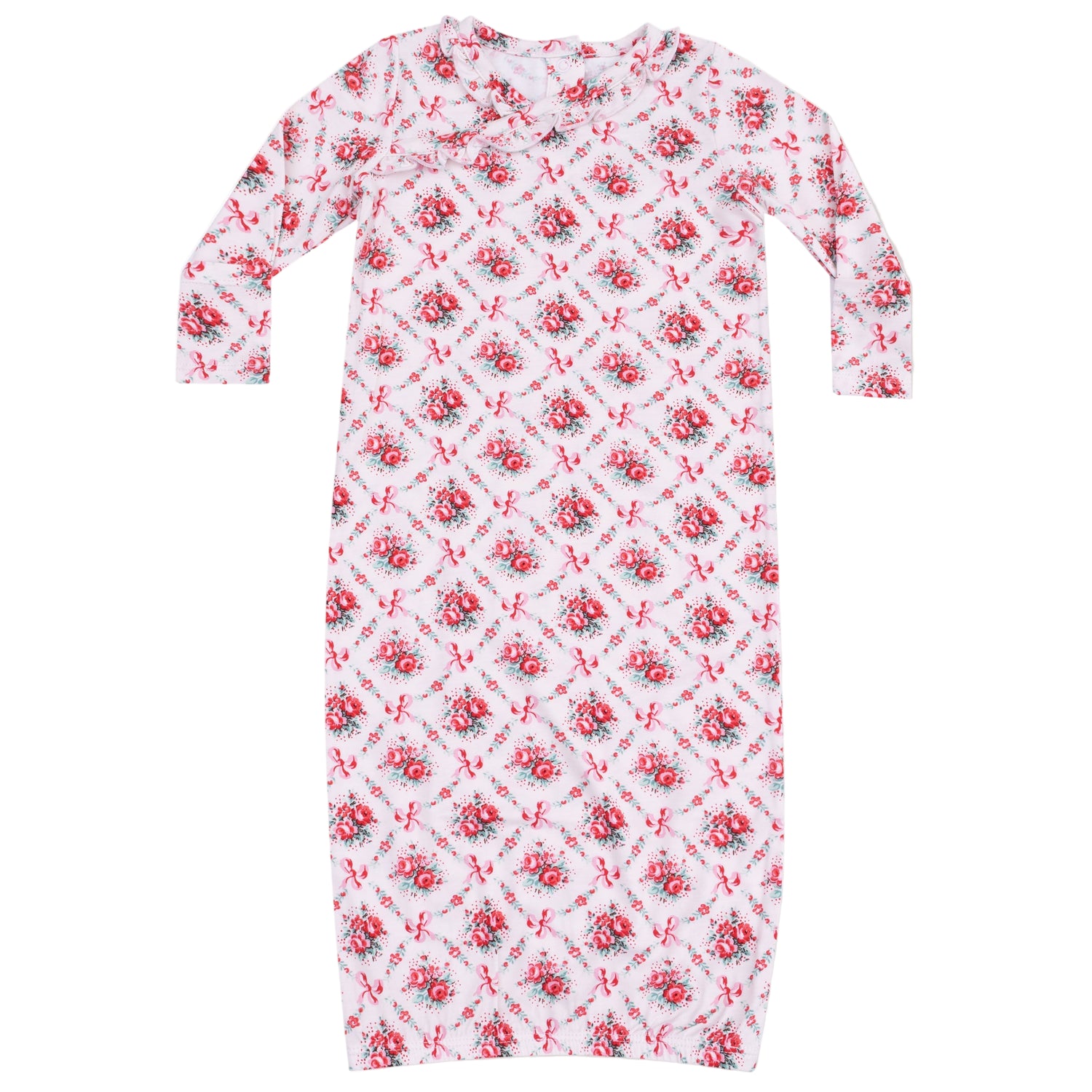 Kimono Gown - Rose Bow Lattice - 0-3M is backordered and will ship as soon as it is back in stock.