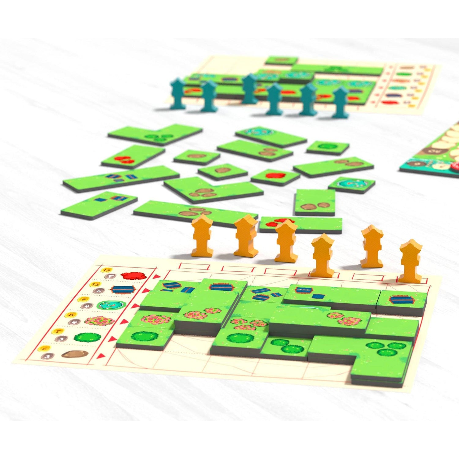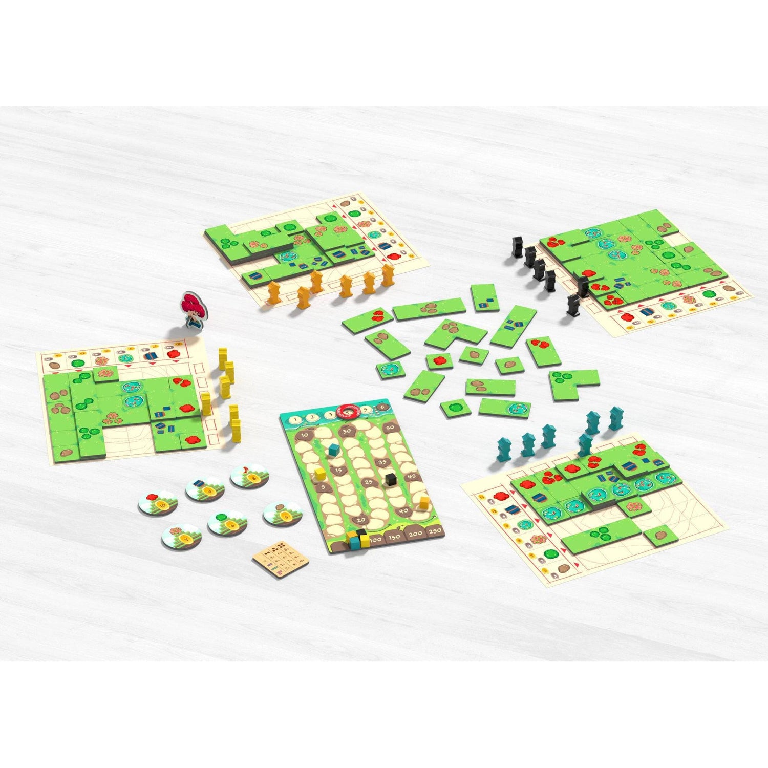 As the game progresses, you can also build upwards, placing garden tiles on top of other garden tiles. Receive points during the game for your placed garden tiles, scoring more points the higher the layer, with a bonus for the fifth layer. At the end of the game players receive extra points for having the most objects in their gardens. The highest score wins!