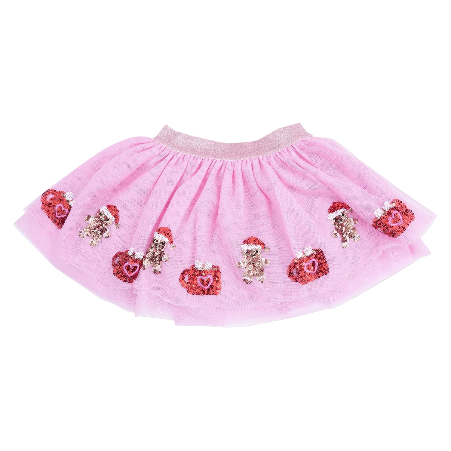 Get ready for cozy cuteness! Our Gingerbread Tutu Skirt is sprinkled with festive fun featuring sequin gingerbread men wearing Santa hats and mugs of steamy hot cocoa. The pink sparkly waistband adds just the right amount of holiday magic, making this tutu perfect for twirling through cookie decorating, family photos, or holiday parties.