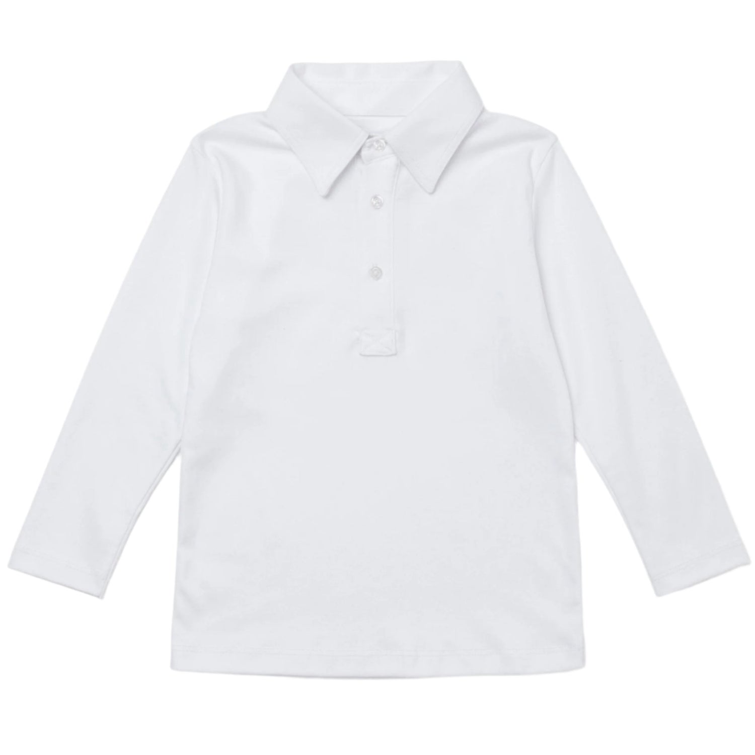 Finn Pima Cotton Long Sleeve Polo for Boys - White - HoneyBug