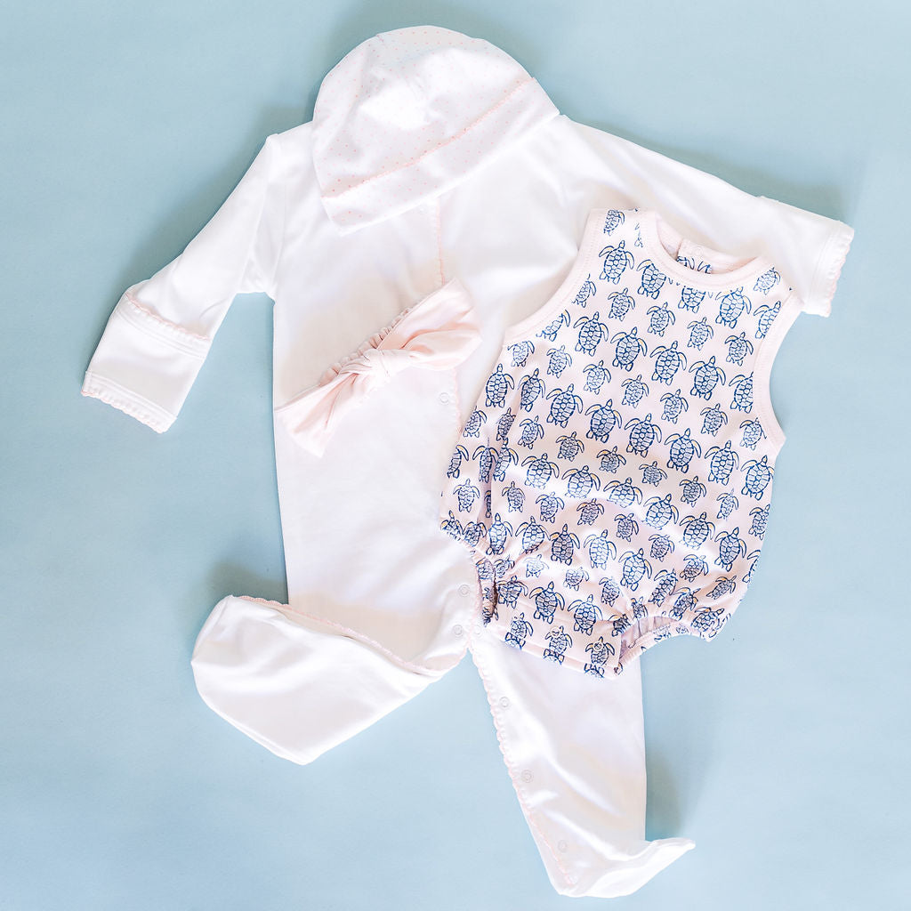 Beautifully hand smocked bubble romper on the softest 100% pima cotton. This lightweight, airy romper features a roomy, bubble-shaped silhouette, perfect for keeping your baby cool and comfortable during warmer days. Dress your little one in playful charm with our adorable Bubble Romper. There's nothing cuter than a baby in a bubble!