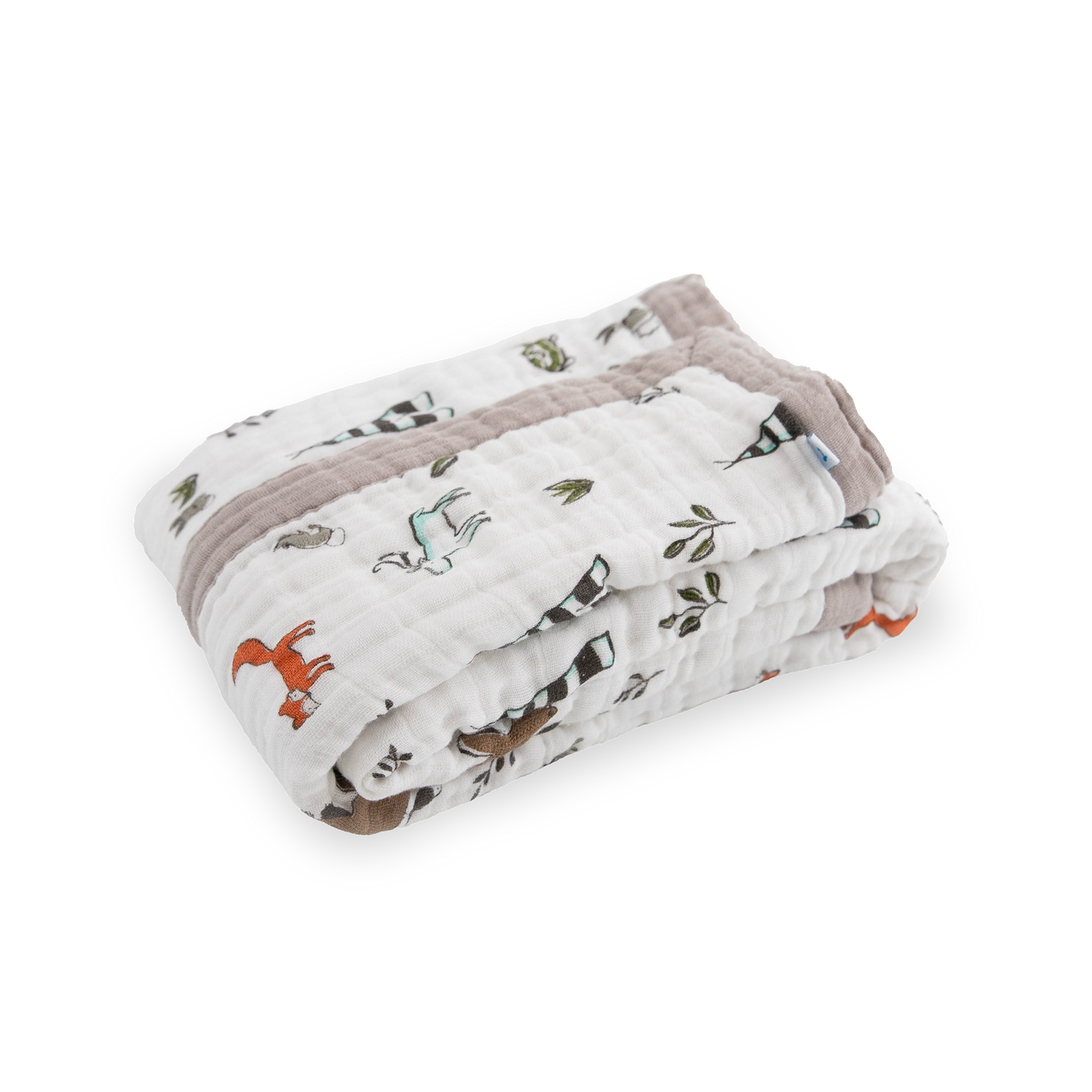 Cotton Muslin Baby Quilt - Forest Friends - HoneyBug