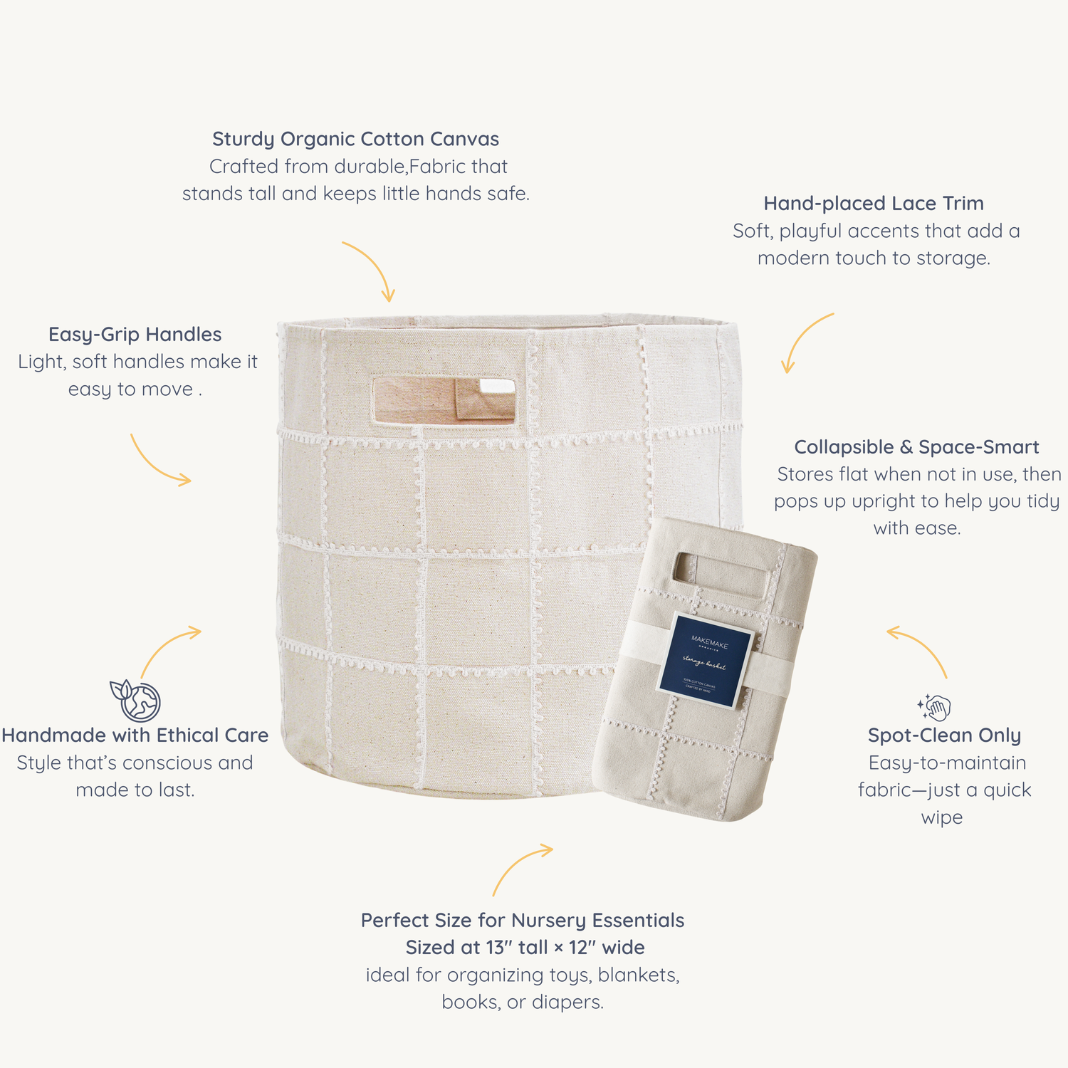 Handmade Canvas Storage Basket Lace - Ivory