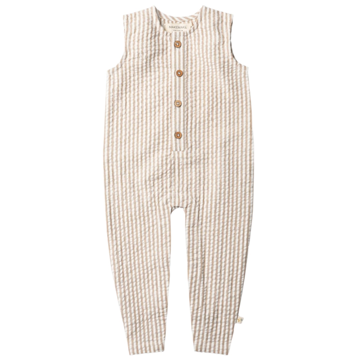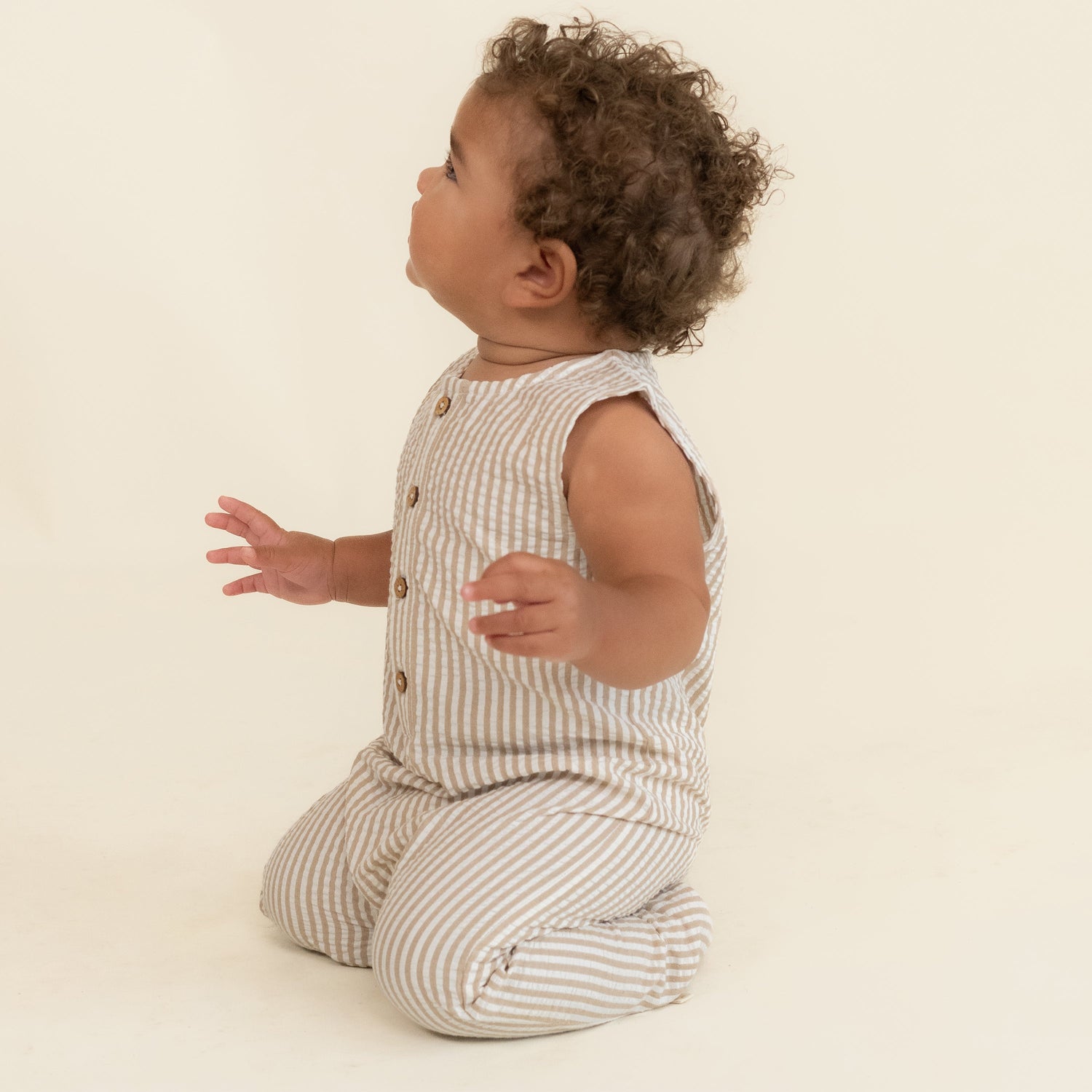 Organic Sleeveless Full Romper - Brown Stripes - 0-3M is backordered and will ship as soon as it is back in stock.