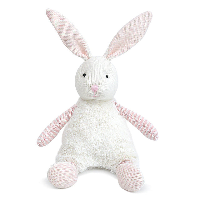 Talk about ear-resistible! No bunny compares to Mon Ami's Floppy Bunny. Ultra-cuddly and cute-as-can be, this bunny stuffed animal is covered in the plushest faux fur with blush pink striped arms and legs for a playful touch. Pop our bunny plush toy in a baby's Easter basket or wrap it up as a baby shower gift. From playtime to naptime, any little girl will love hopping around with an adorable bunny stuffed animal.