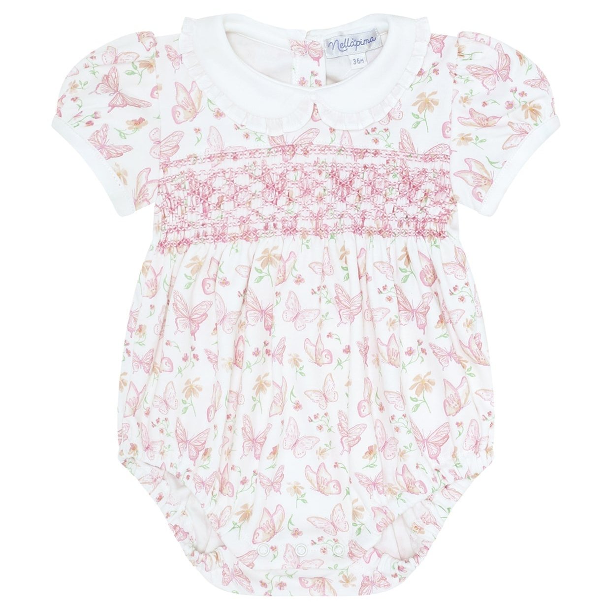 Butterflies Print Smocked Bubble - Pink / 3 - 6M is backordered and will ship as soon as it is back in stock.