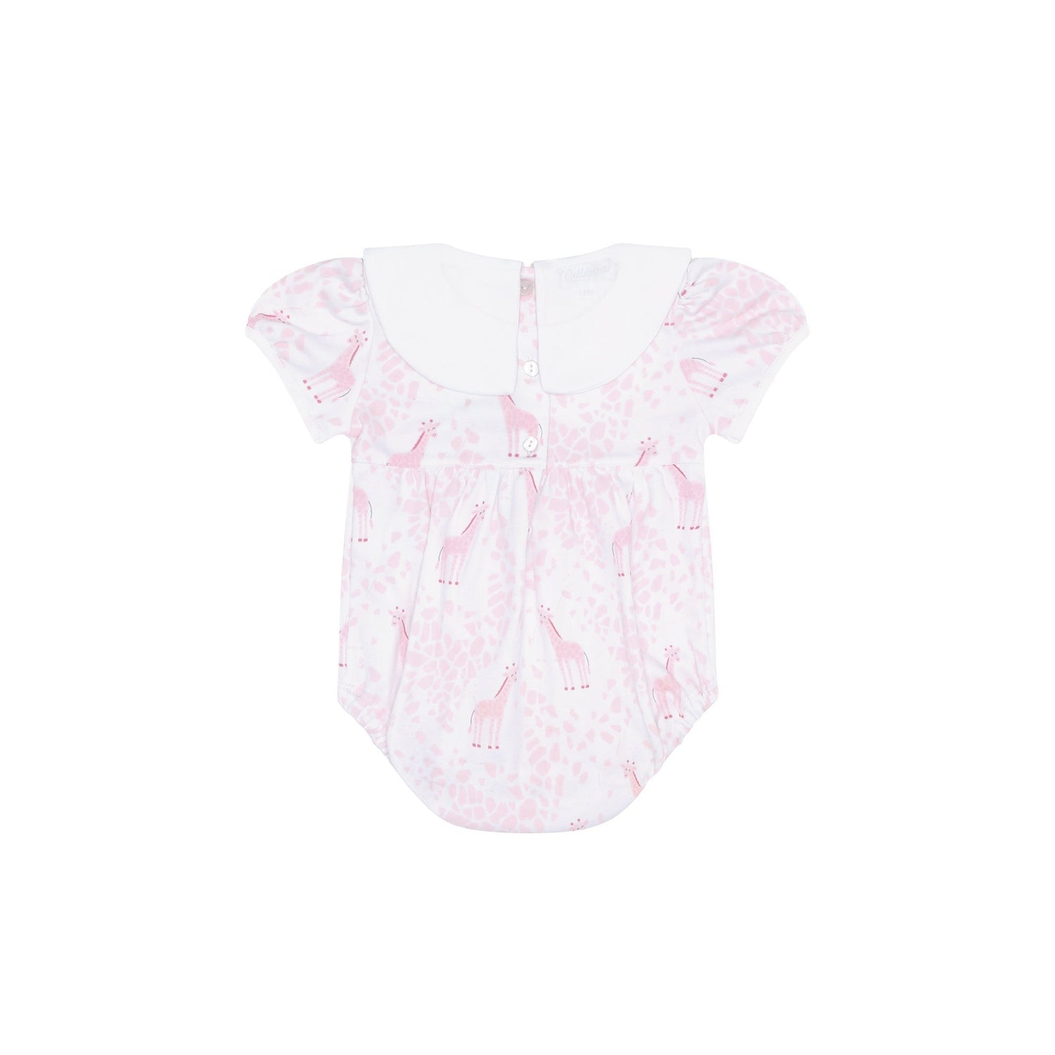 Our 100% Pima Cotton Pink Giraffe Print Smocked Bubble is designed to bring a touch of sweetness, charm, and friendliness to your baby's wardrobe. Available in sizes ranging from 0 to 18 months, this smocked bubble is crafted with love and care to ensure utmost comfort and irresistible style.