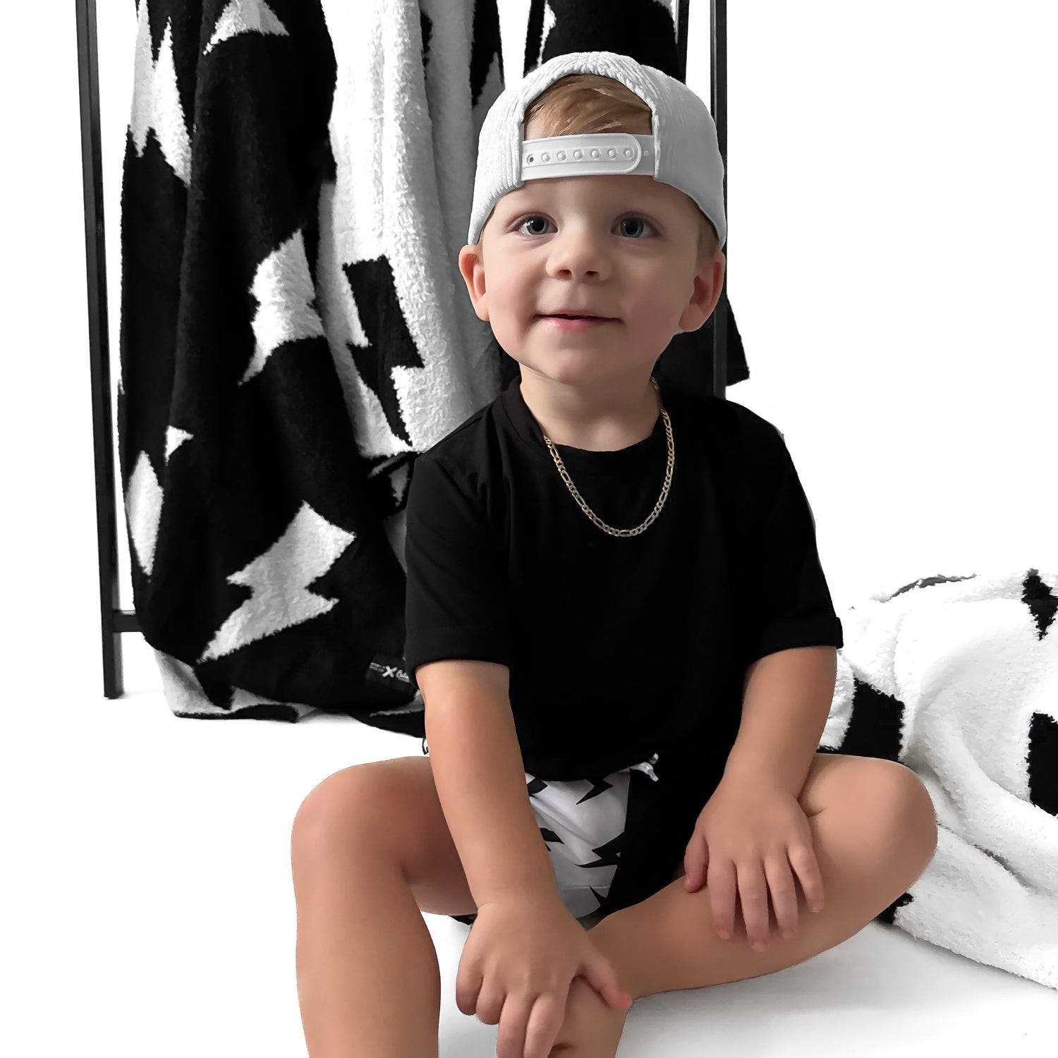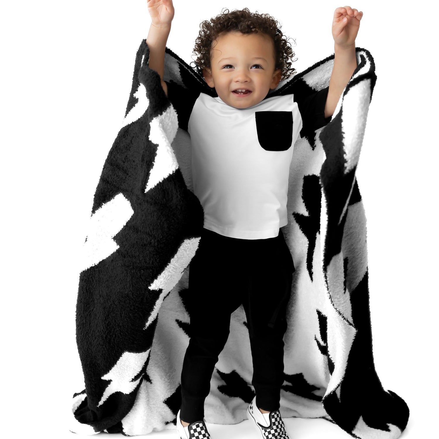 Featuring an awesome black and white lightning bolt print, this versatile blanket is perfect for all ages, making it an ideal addition to your home for little ones and adults alike. Whether you’re snuggling up for storytime, adding a pop of fun to your decor, or keeping warm on chilly nights, this blanket has you covered.