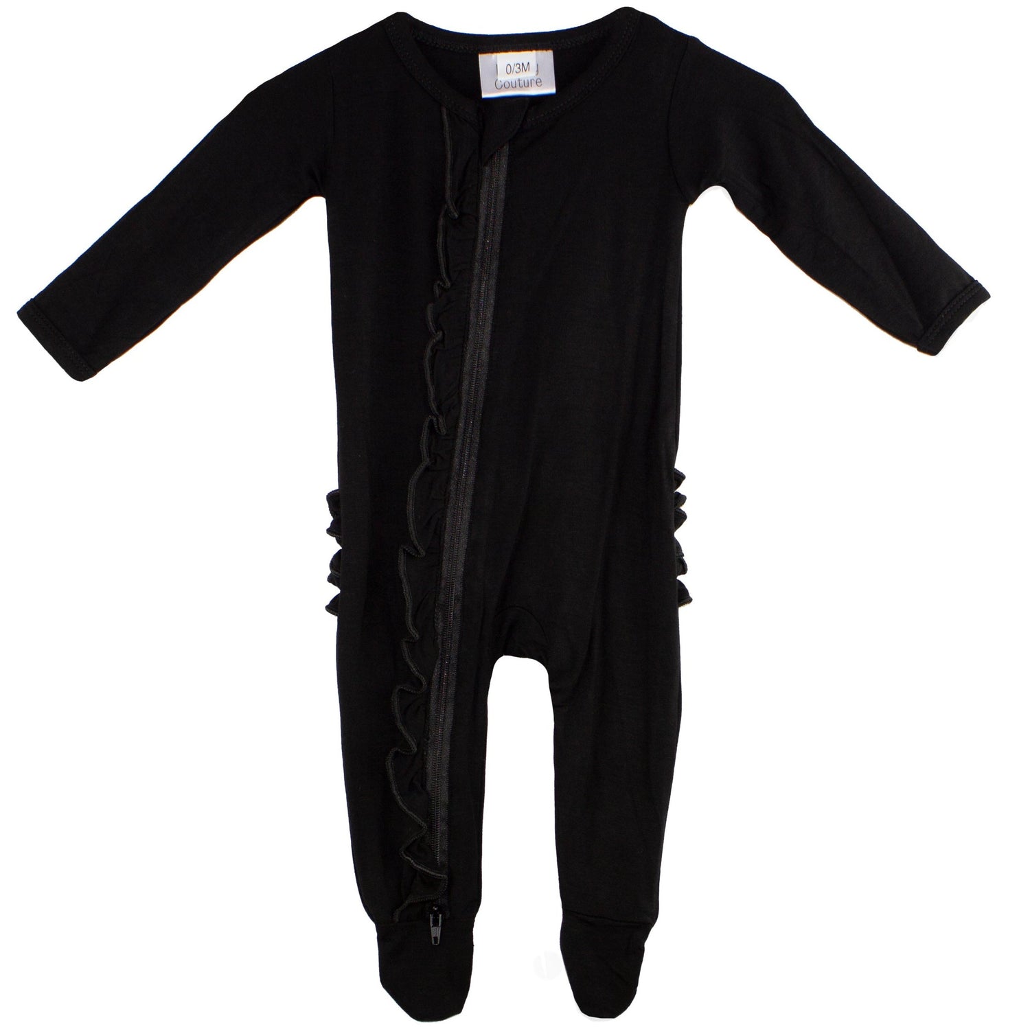 Ruffle 2 Way Zip Romper - Black - HoneyBug