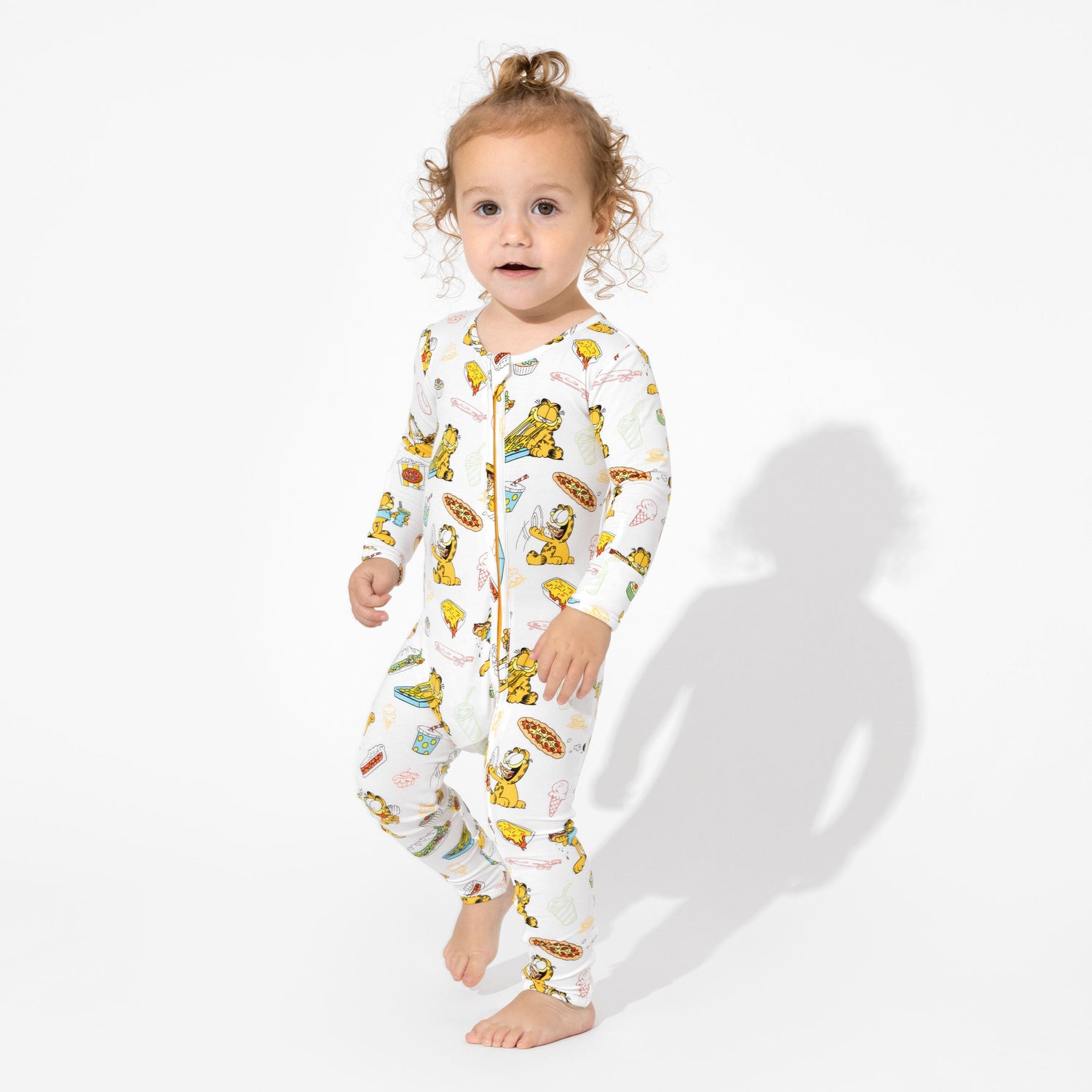 Get ready for a purr-fectly cozy night's sleep with our Garfield: Snack Attack Bamboo Convertible Footie! Crafted from soft bamboo fabric, this footie pajama offers ultimate comfort for your little one. Featuring playful Garfield prints inspired by everyone's favorite lasagna-loving feline, it adds a touch of whimsy to bedtime. Plus, with its convertible design, it offers versatility for every sleepy adventure. Treat your kiddo to the ultimate in comfort and style. Shop now and let the snacking adventures begin!