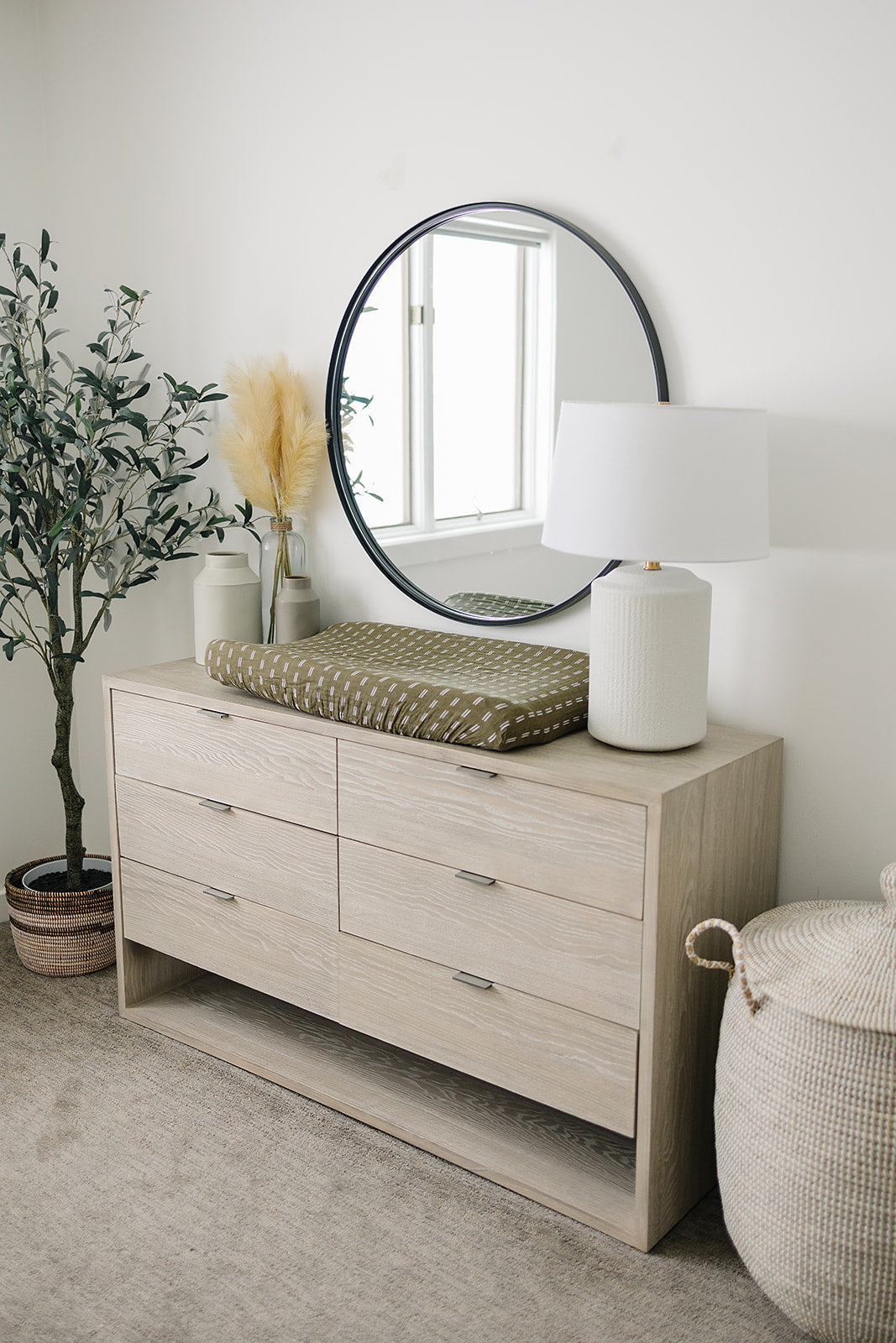 Transform your baby's changing area with this Changing Pad Cover. Crafted from our exclusive designed fabric, this cover is not only soft and breathable but also easy to wash. The elasticized edges make it a breeze to put on and take off standard changing pads. Elevate your nursery with this stylish and practical accessory that ensures your little one's comfort during diaper changes.