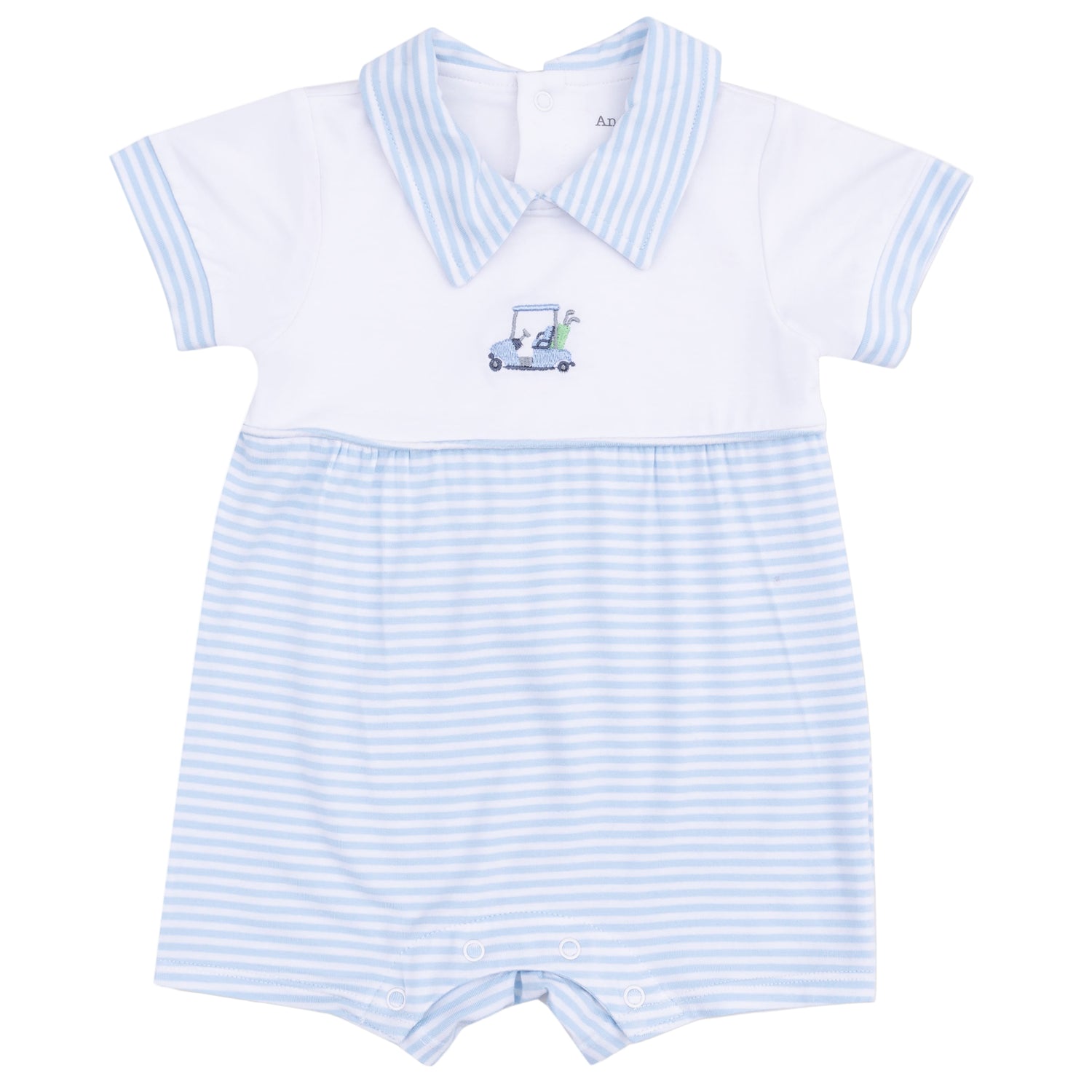 Polo Shortie with Contrast - Baby Golf Carts - Blue Stripe