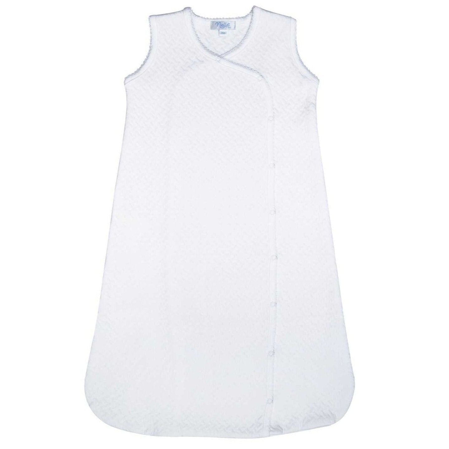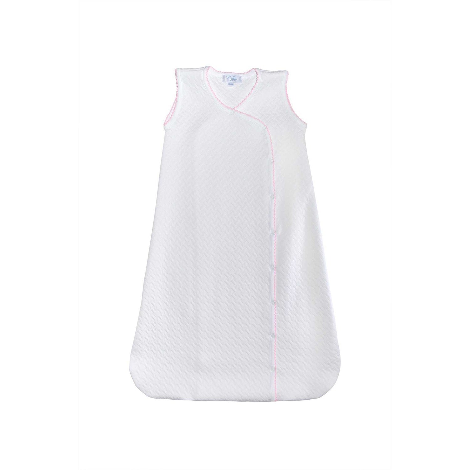 Give your baby the gift of warmth and security with this Sleeping Basket Weave Baby Sack! Designed to replace loose blankets in the crib that can pose a safety risk, this sack is expertly crafted from elegant Basket Weave fabric and finished with delicate Picot Trim details in three beautiful colors: Pink, White, and Blue.