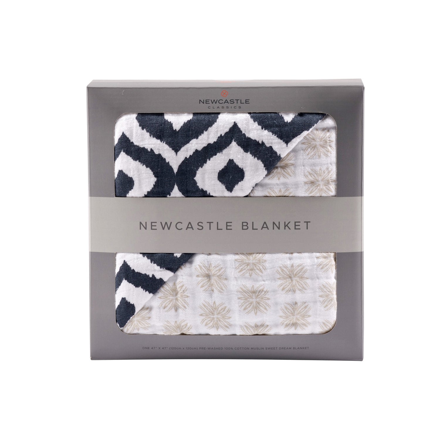 Morrocan Blue And Flower Child Cotton Muslin Newcastle Blanket
