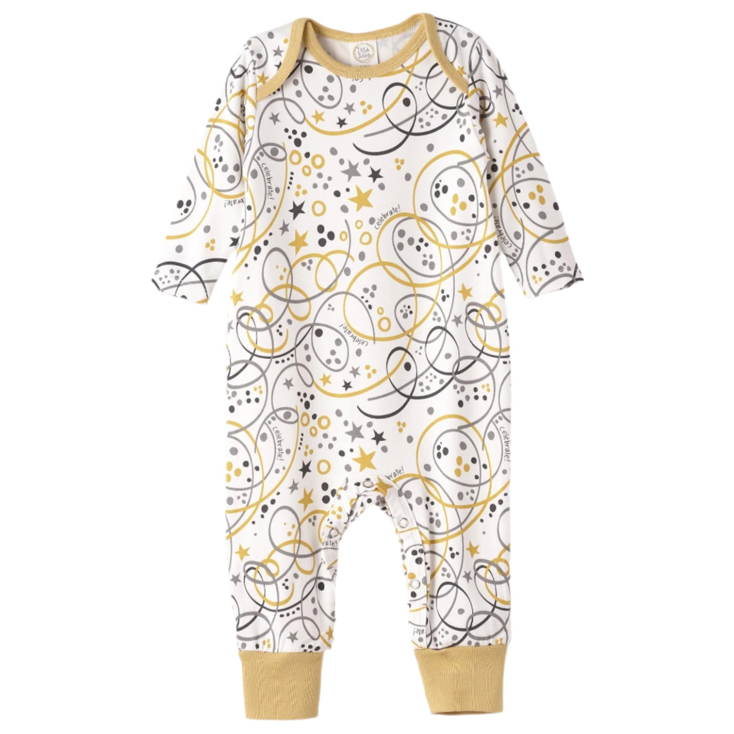 Fun and festive romper with our "Celebrate New Year" print.  Baby will look cute and feel comfy in our ultra-soft and breathable bamboo/cotton jersey fabric.  Has an envelope neck and snaps at the bottom for easy on and off.  Also available in kids and adult pajamas for family matching holiday outfits!  Machine wash warm. Tumble dry low.