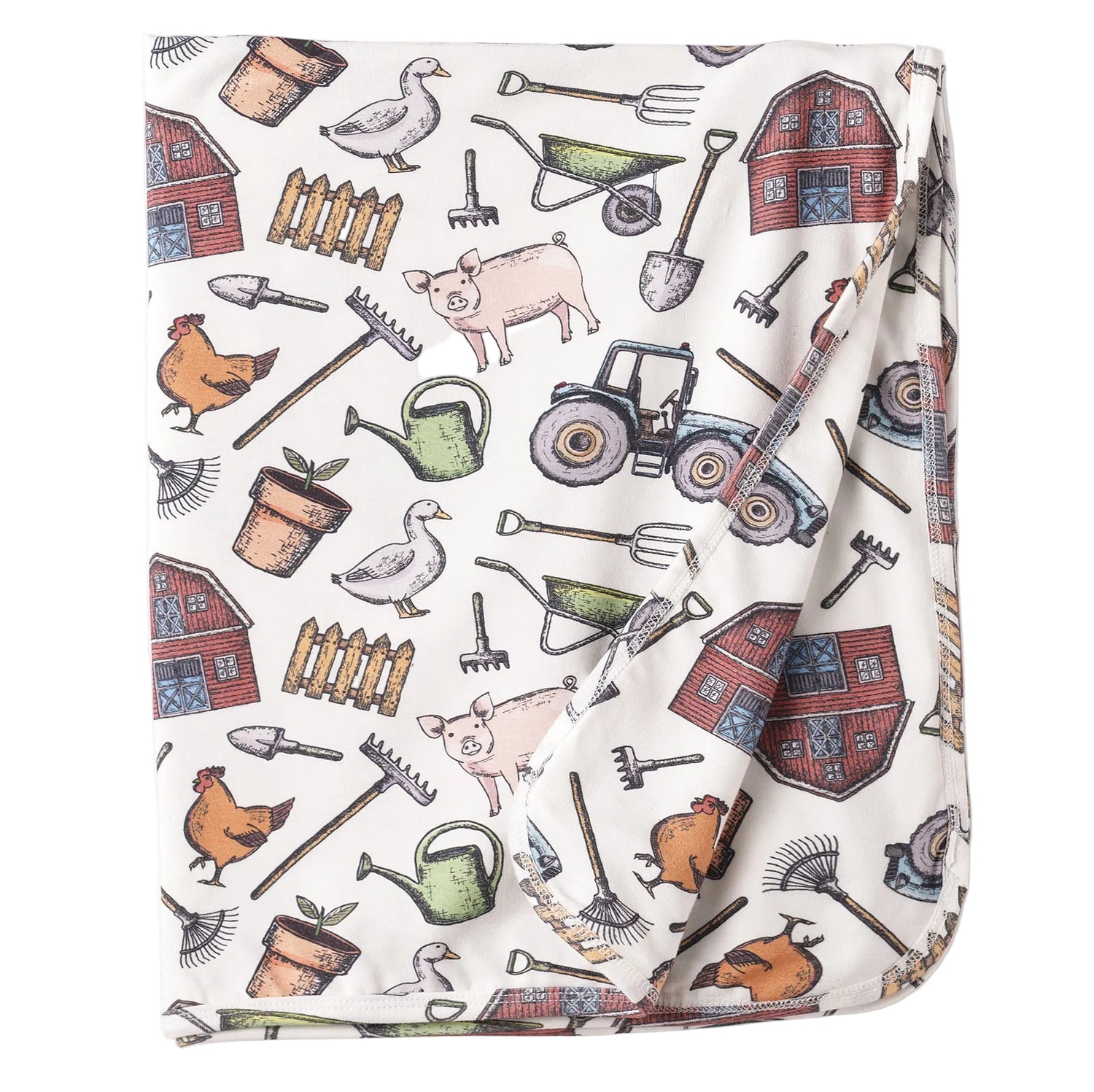 This farmyard stroller blanket wraps little ones in barnyard bliss. Made from an ultra-soft bamboo-spandex blend, it’s cozy yet breathable, naturally hypoallergenic, and eco-friendly—perfect for delicate skin. Sized at 30" x 22", it’s just right for stroller snuggles and naptime cuddles. Lightweight, sweat-resistant, and machine washable for everyday adventures.