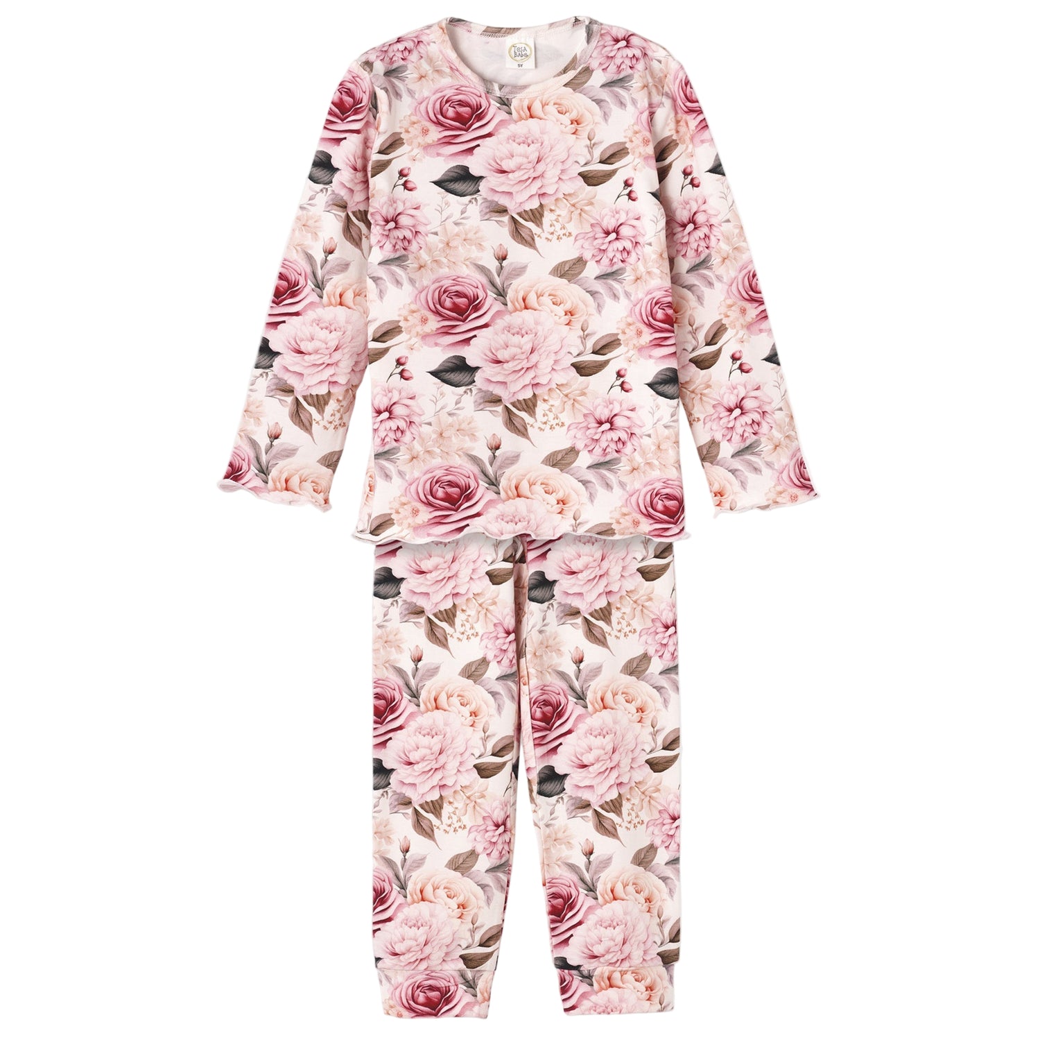This ultra-soft girls pajama set features an elegant, vintage-inspired floral print and is the perfect mix of comfort and elegance. Made from a bamboo-spandex blend, these PJs are cozy, absorbent, hypoallergenic, and eco-friendly. The top has a round neck, and the bottoms have a comfy elastic waistband. Machine washable and tumble dry low for effortless care, making bedtime a breeze!