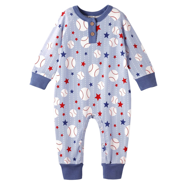 Grand Slam Bamboo Baseball Henley Romper for Baby Boys