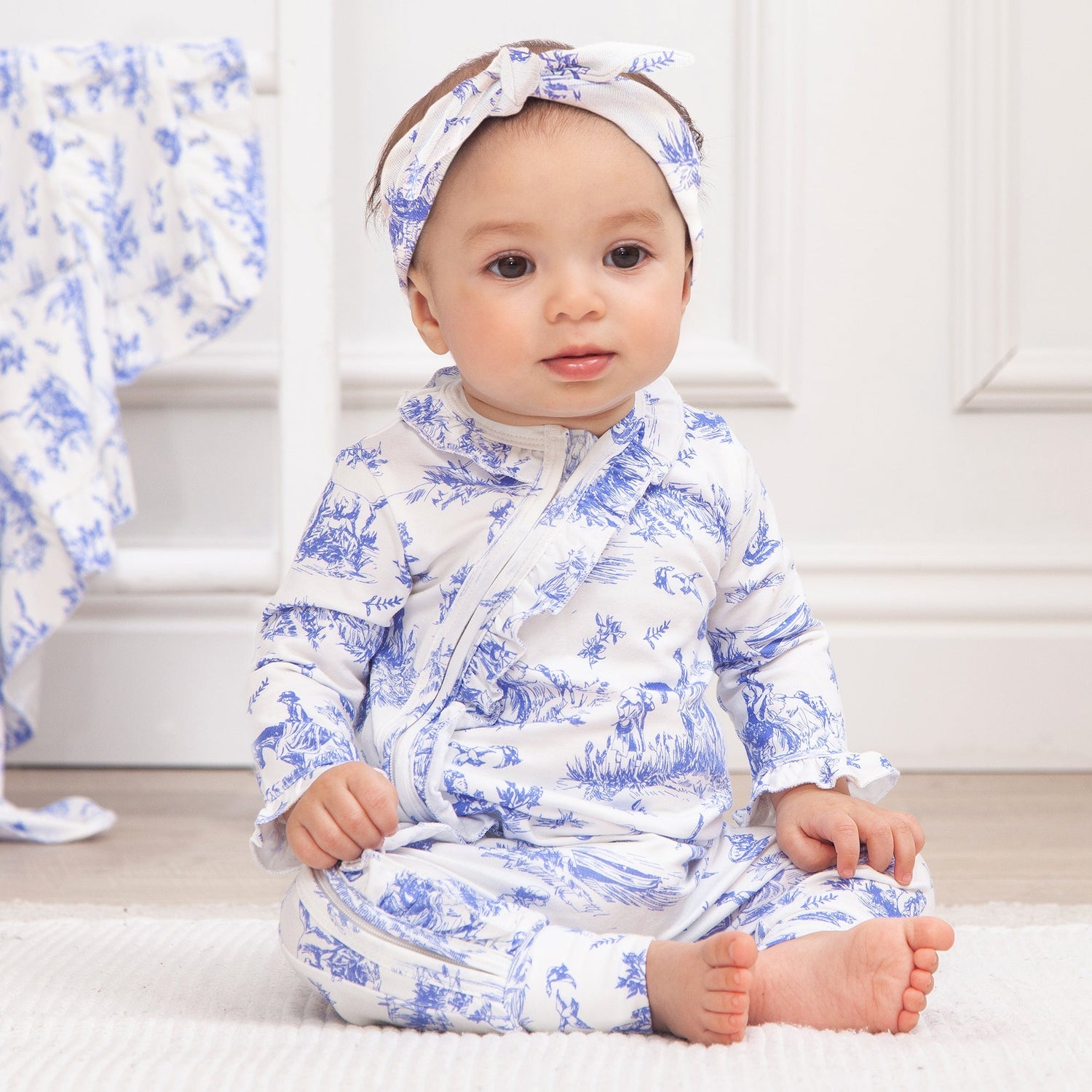 Toile de Jouy Bamboo Zipper Romper - NB is backordered and will ship as soon as it is back in stock.