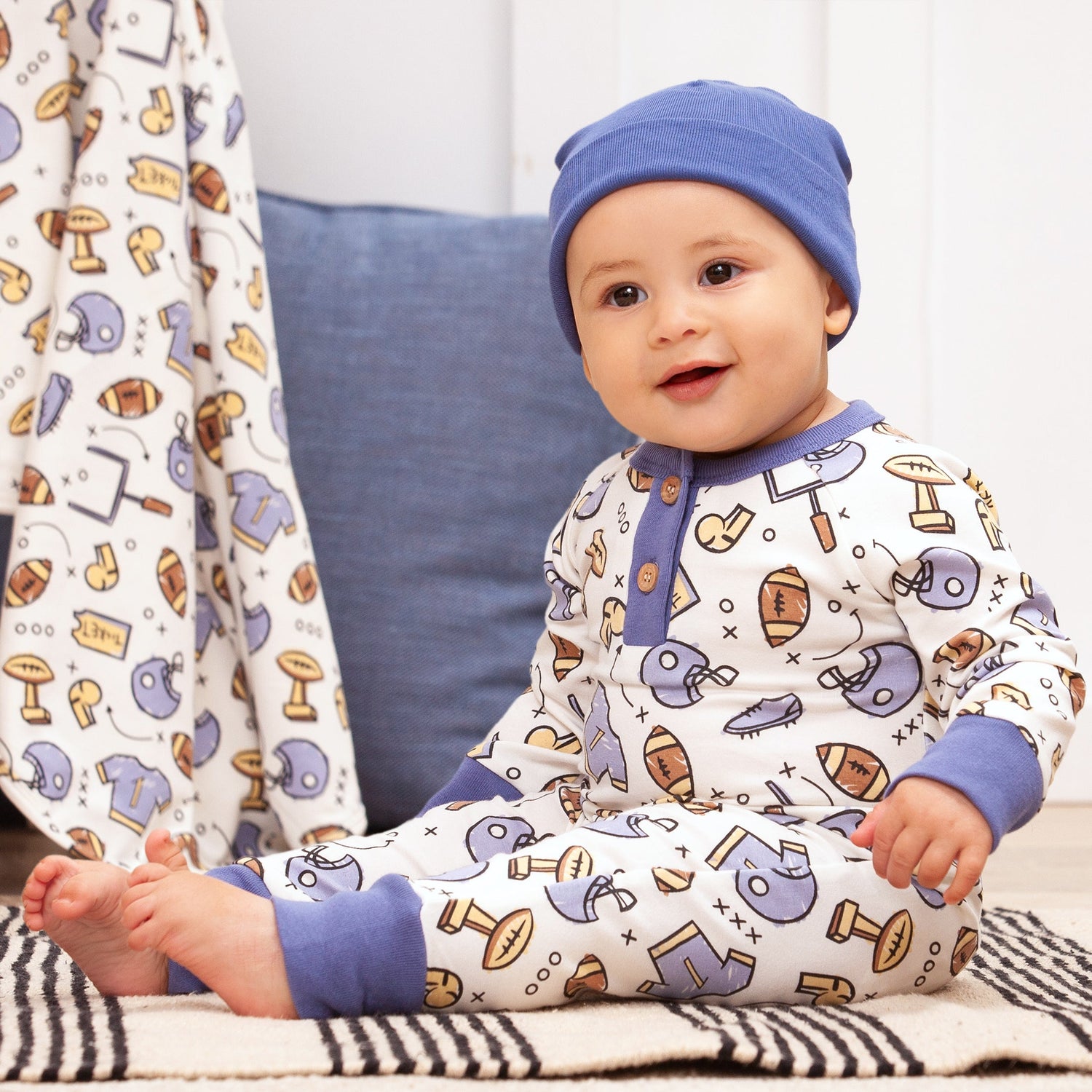 Touchdown Baby Boy Bamboo Henley Football Romper