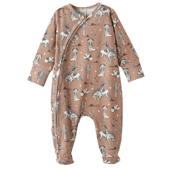 Wild Wrangler/Brown Western Baby Boy Bamboo Zipper Romper