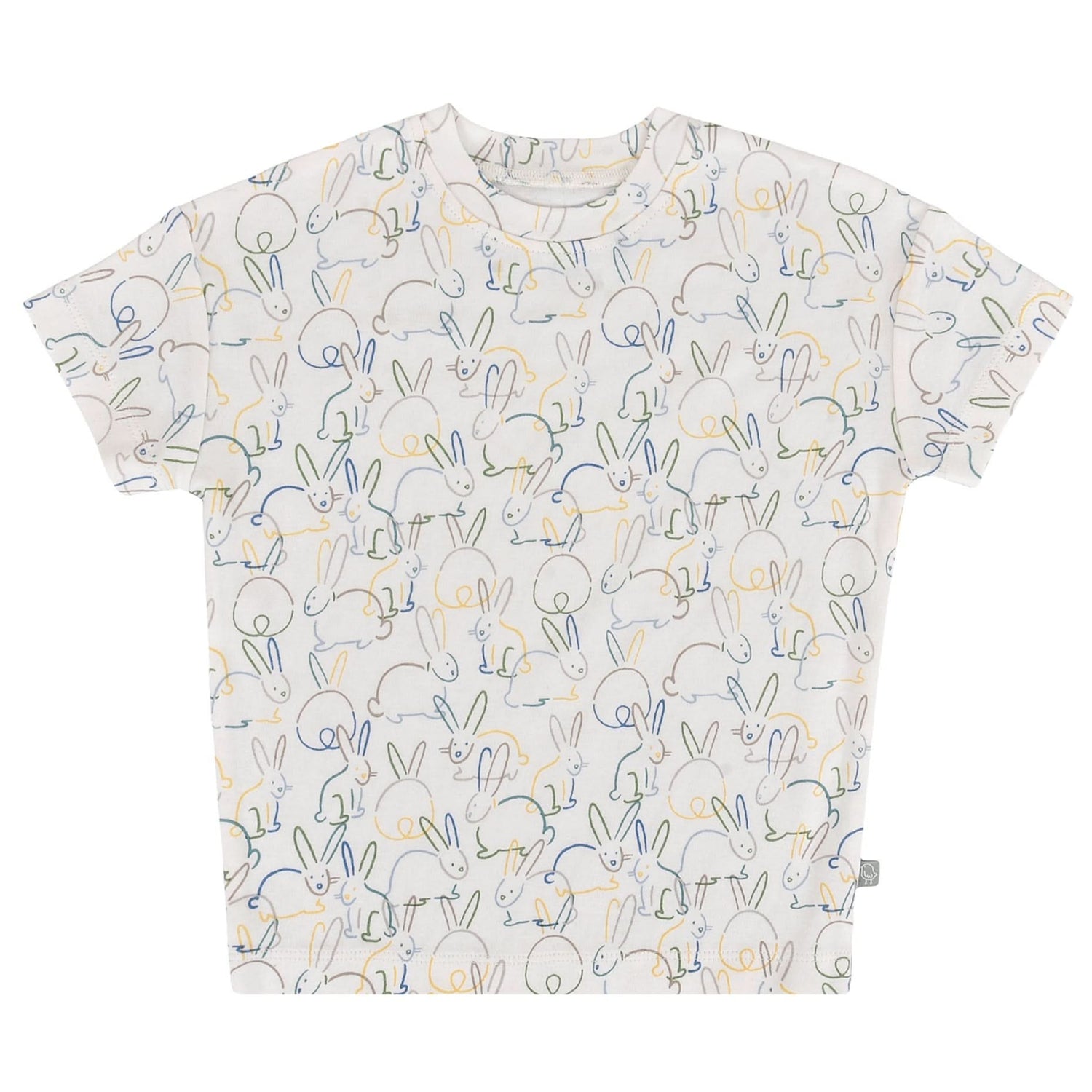 Hop into comfort and style with the Finn + Emma Toddler Organic Boxy Tee! Crafted from soft, eco-friendly organic cotton, this tee is as soft as a bunny's hug (minus the fur). Featuring an adorable all-over bunny print, it's perfect for your little one who’s always on the move—whether they’re chasing their tail or just chasing after you.