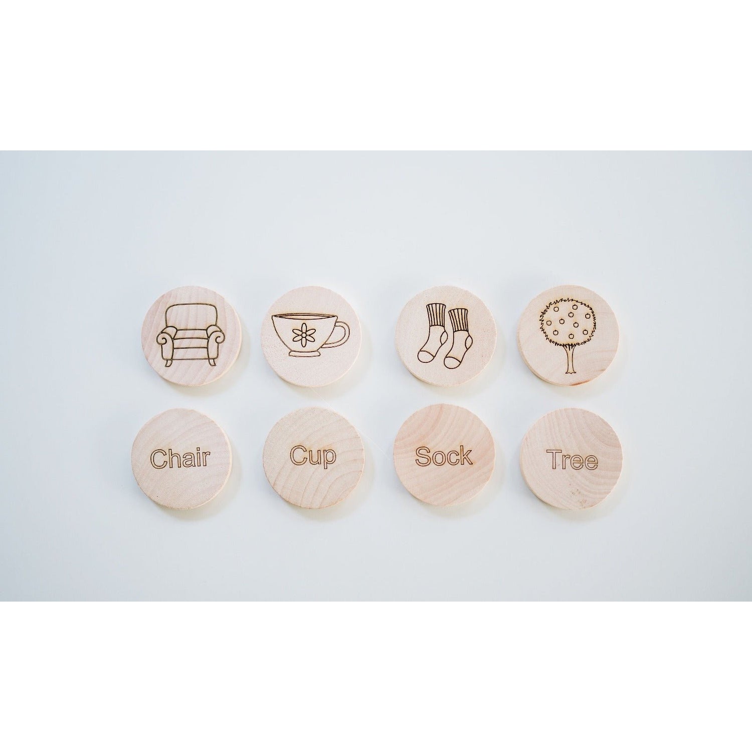 Memory matching tiles are a timeless classic that never goes out of fashion! It can be enjoyed solo or with the entire family - teaching kids to take turns and share with others. These wooden matching tiles will also promote short term memory skills. This set features 12 sight words and corresponding pictures on 24 wooden tiles.