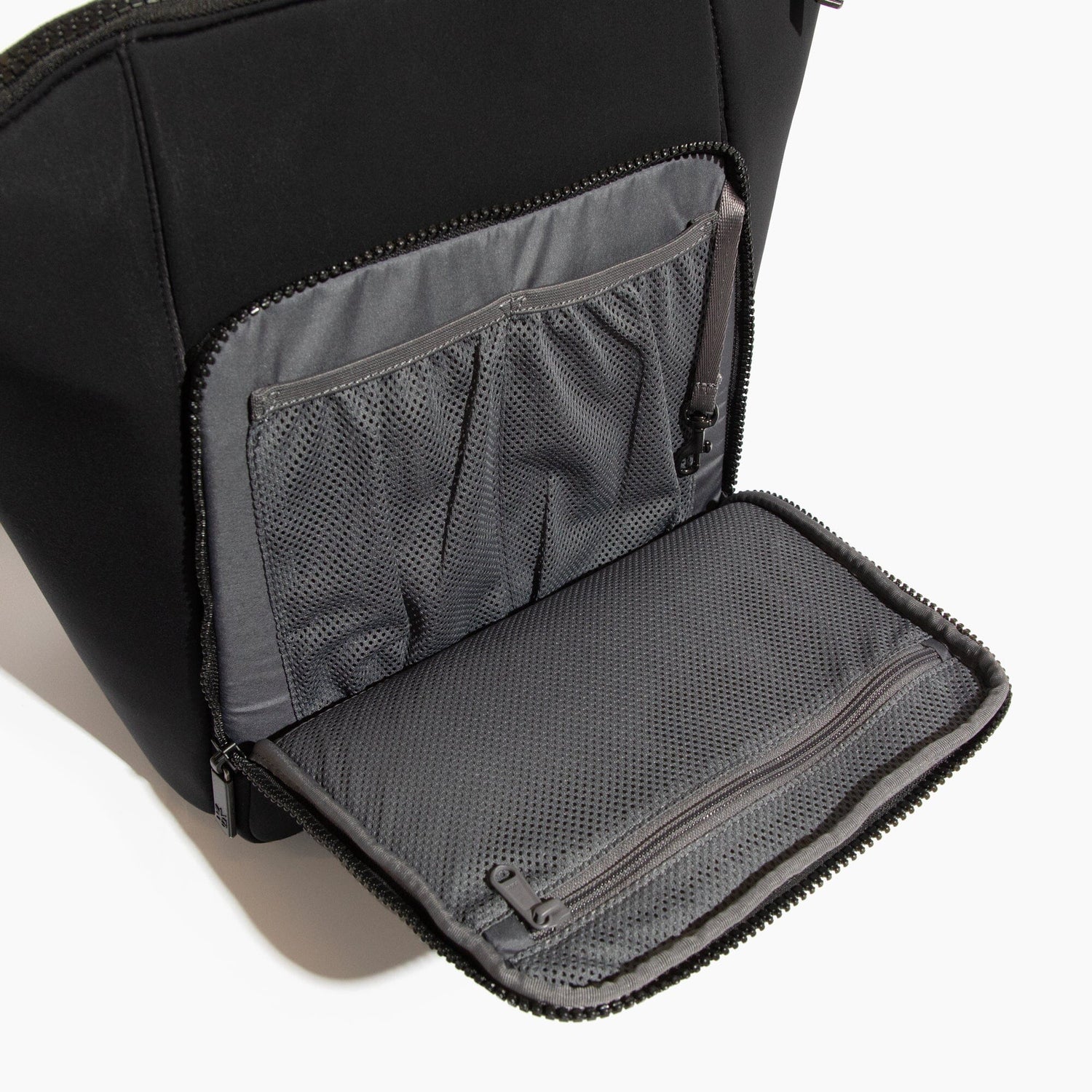 • 1 phone pocket, key clip, large zippered mesh pocket