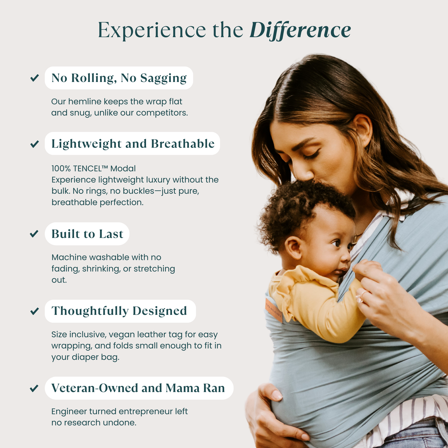 We set out to help parents experience the comfort and blessing of wearing their babies. Enough people are telling you that motherhood is scary and messy, and we want you to embrace the other side. Motherhood is also beautiful, fun, rewarding and, well -- Awesome, and wearing your baby can take you there. Tuck and Bundle was created to help others feel more comfortable and confident wearing their baby.