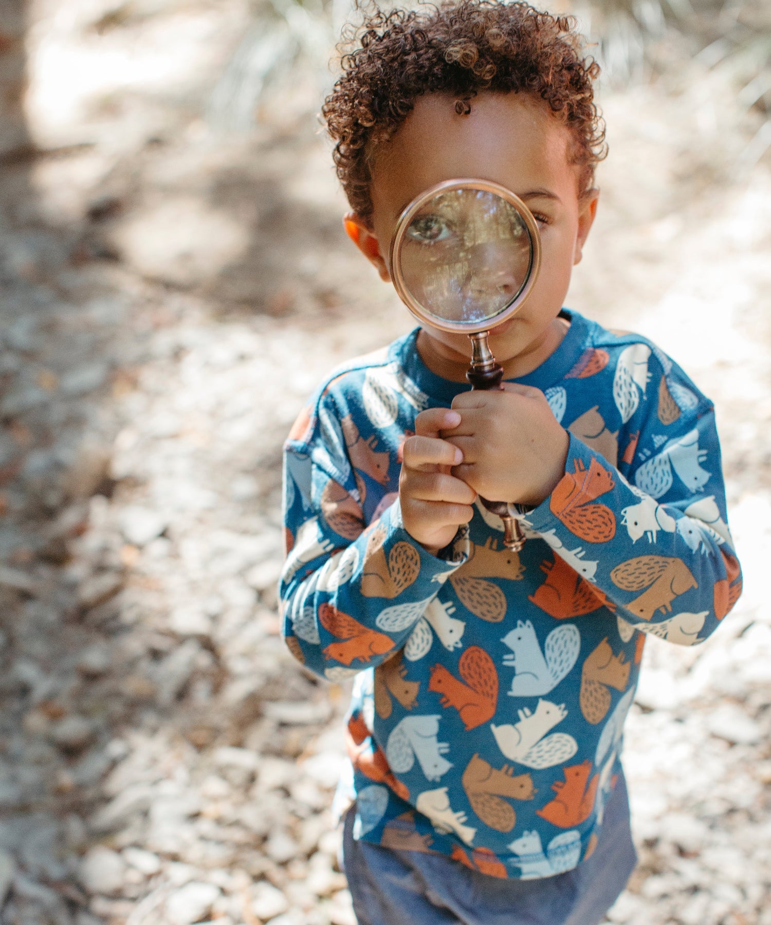 - All-over woodland squirrel print in earthy, gender-neutral tones