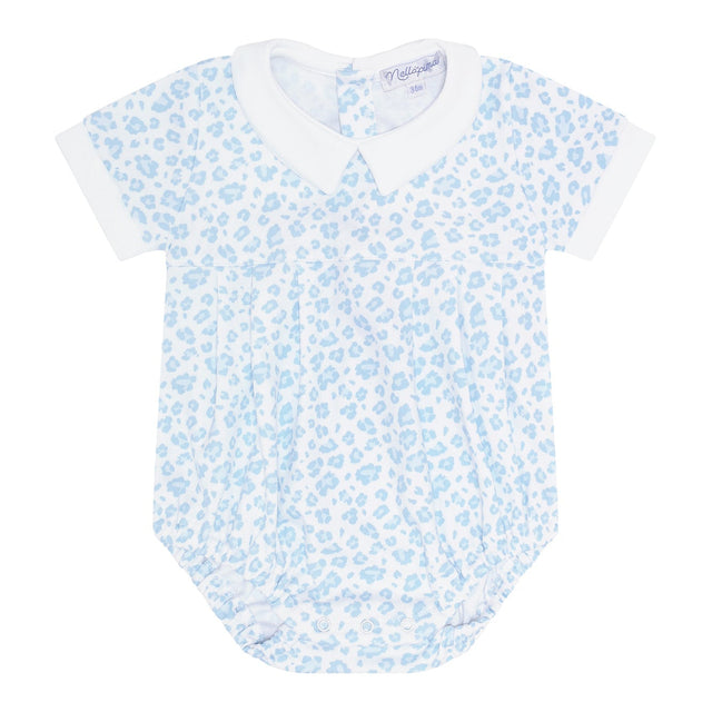 Elevate your baby's wardrobe with our classic blue cheetah print bubble, a timeless piece crafted from stylish and durable fabric.