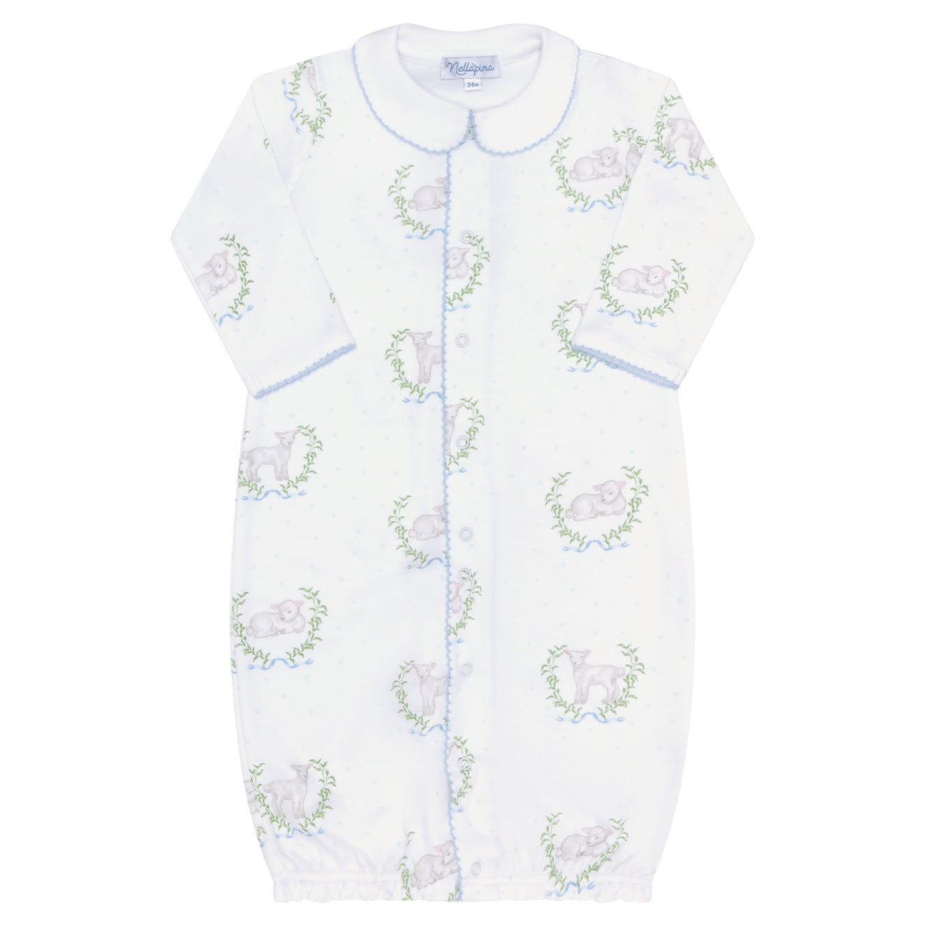 Blue Lamb Print Converter Gown - Blue / New Born is backordered and will ship as soon as it is back in stock.