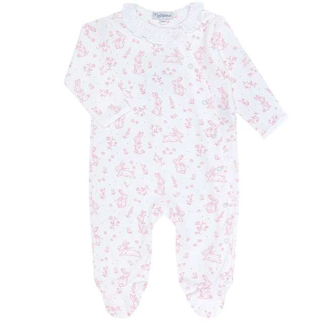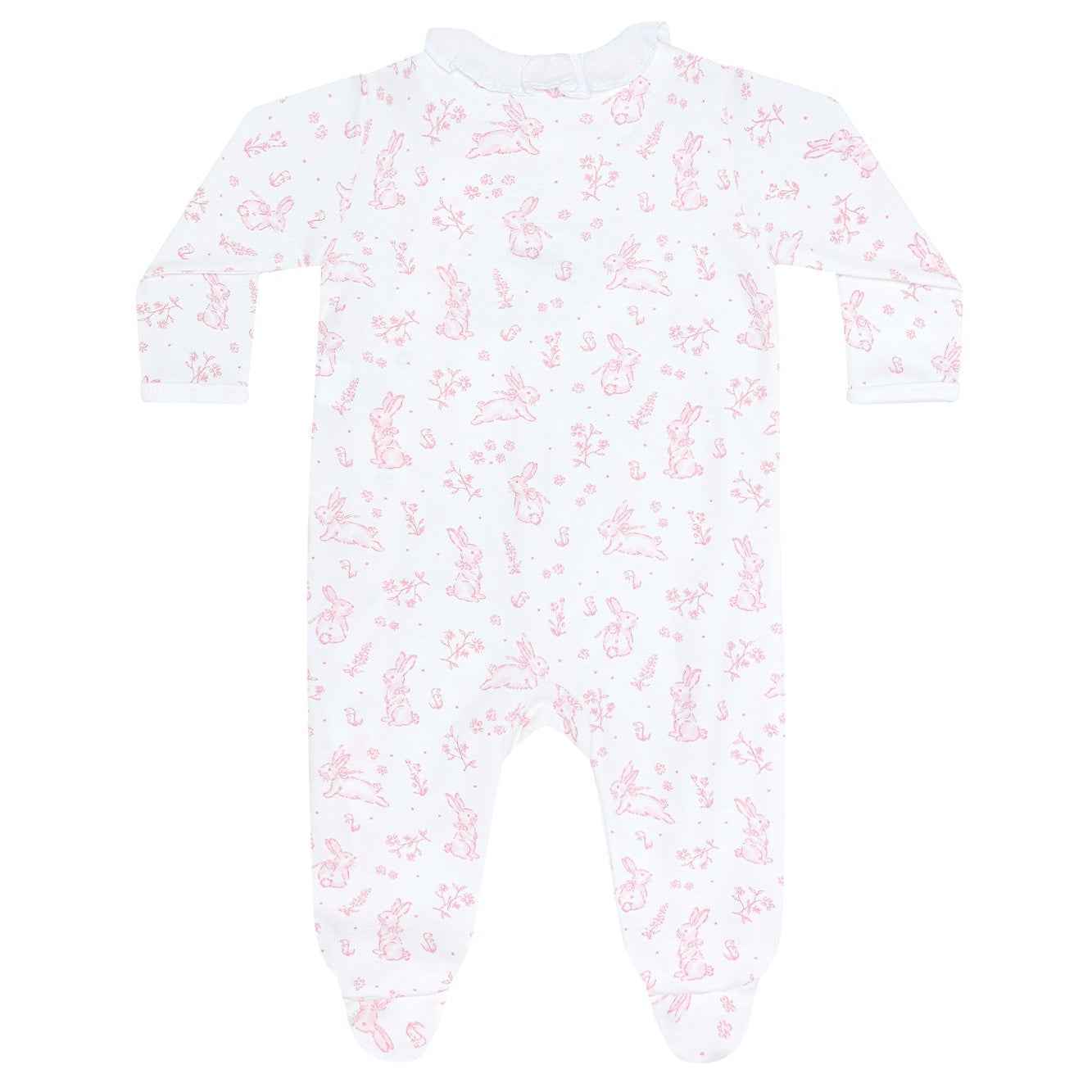 Pink Bunny Toile Crossover Footie - Pink / 0 - 3M is backordered and will ship as soon as it is back in stock.