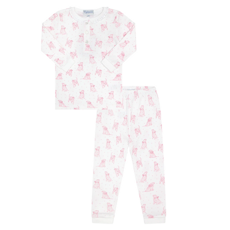 Pink Puppy Love Print Zipper Footie