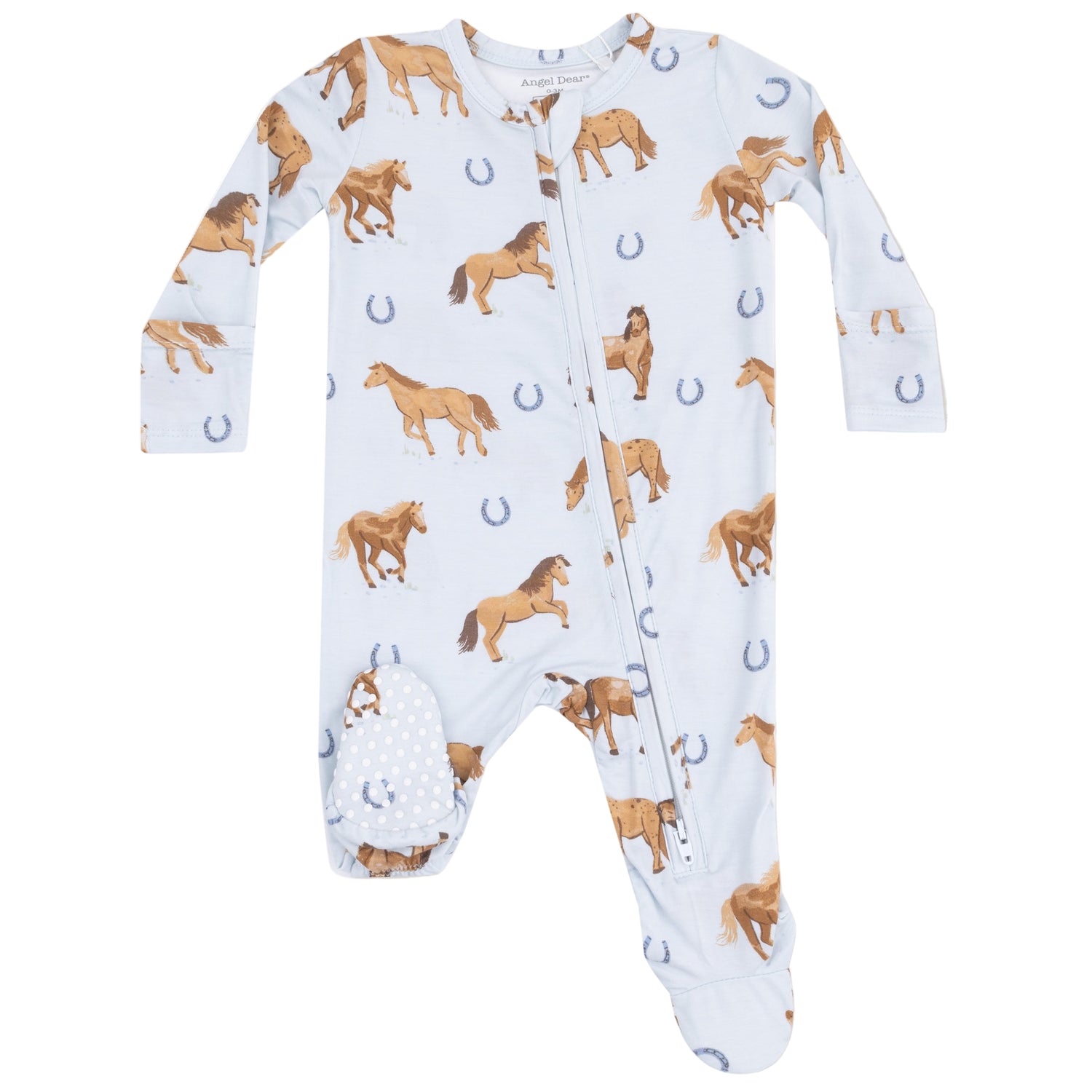 2 Way Zipper Footie - Horses - Blue - NB is backordered and will ship as soon as it is back in stock.