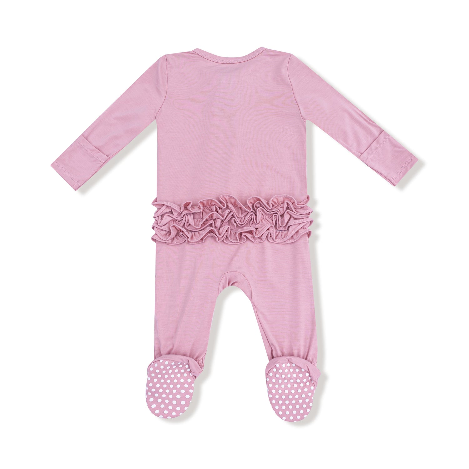 2 Way Zipper Ruffle Back Footie - Cameo Pink