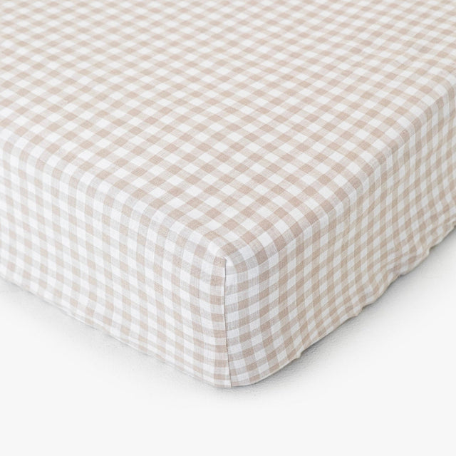 Our Haven Crib Sheets are made from cotton fabric which is breathable + extra soft. We know you will love our this trendy stable print to give your nursery room a refresh! They fit the all standard size crib mattresses measured at 52” x 28“.