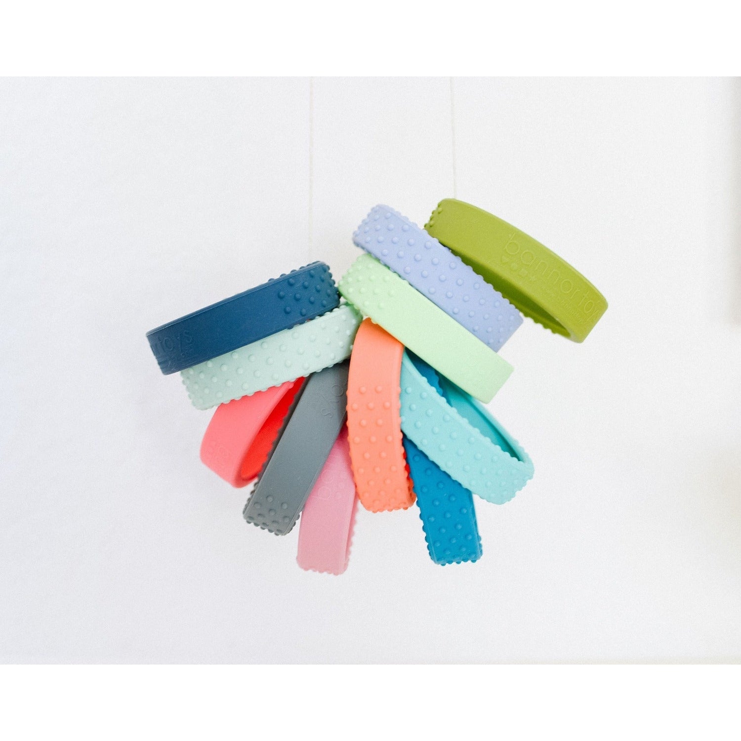 Teething isn't always fun, but it can sure be pretty with these silicone wrapped wooden teether! The new textured silicone wrap fits snuggly around a hard maple wood teether ring and is interchangeable if you want to swap out the color. The entire toy can be tossed in the freezer for up to 1 hour, both the wood and the silicone will retain the coldness and be extra soothing on little gums. It's lightweight and easy to hold, working on all those gross motor skills that are so important early on!