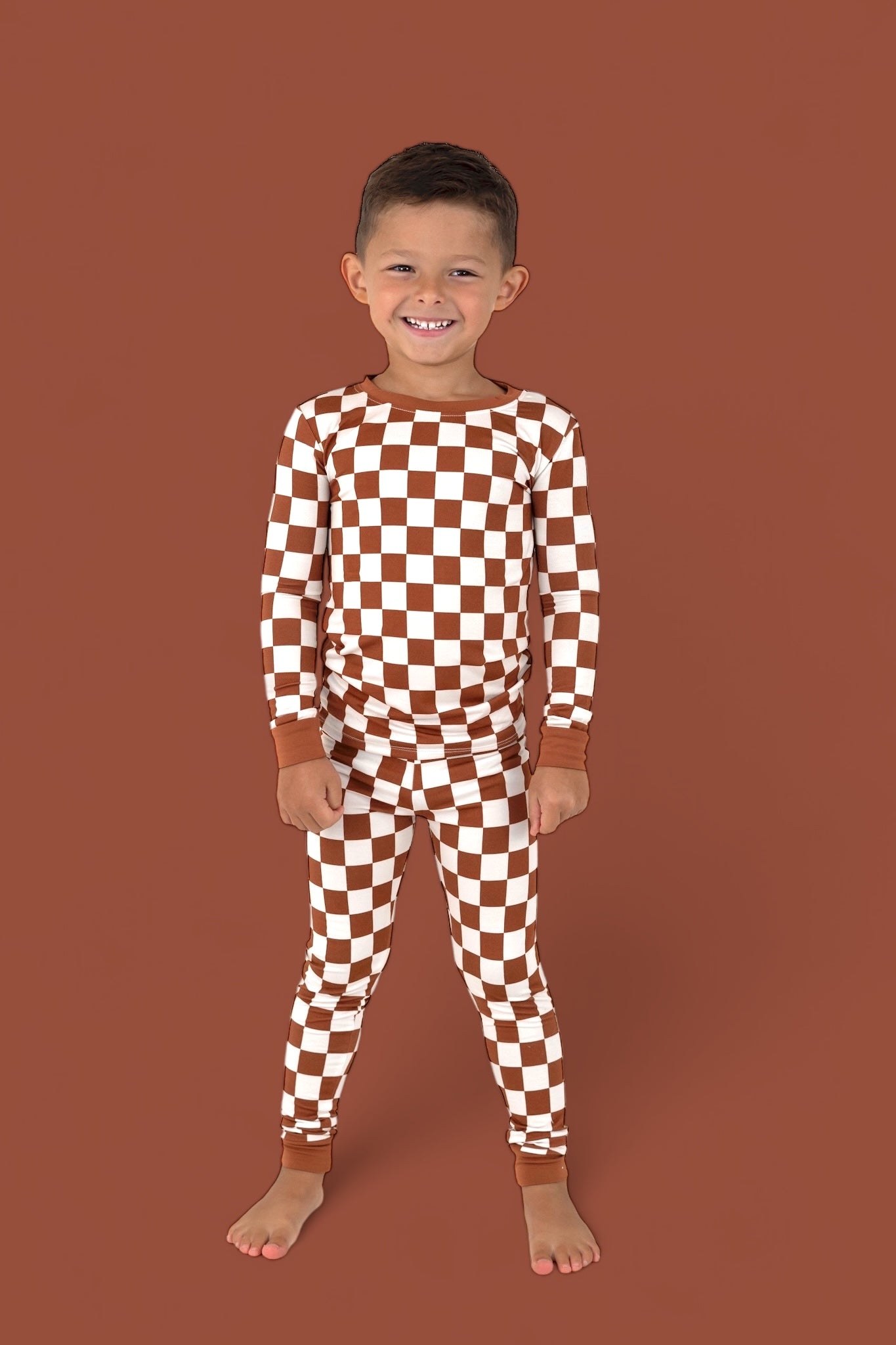 Copper Checkers made from the softest and most breathable seasonal bamboo viscose material, your babe won't want to take this off! Designed for all the love and extra snuggles! Sleep and play with zero irritation with our tag-less DreamyZzz! Extra length for comfort you can grow into! Available in our matching Dream Romper for the sweetest sibling sets!