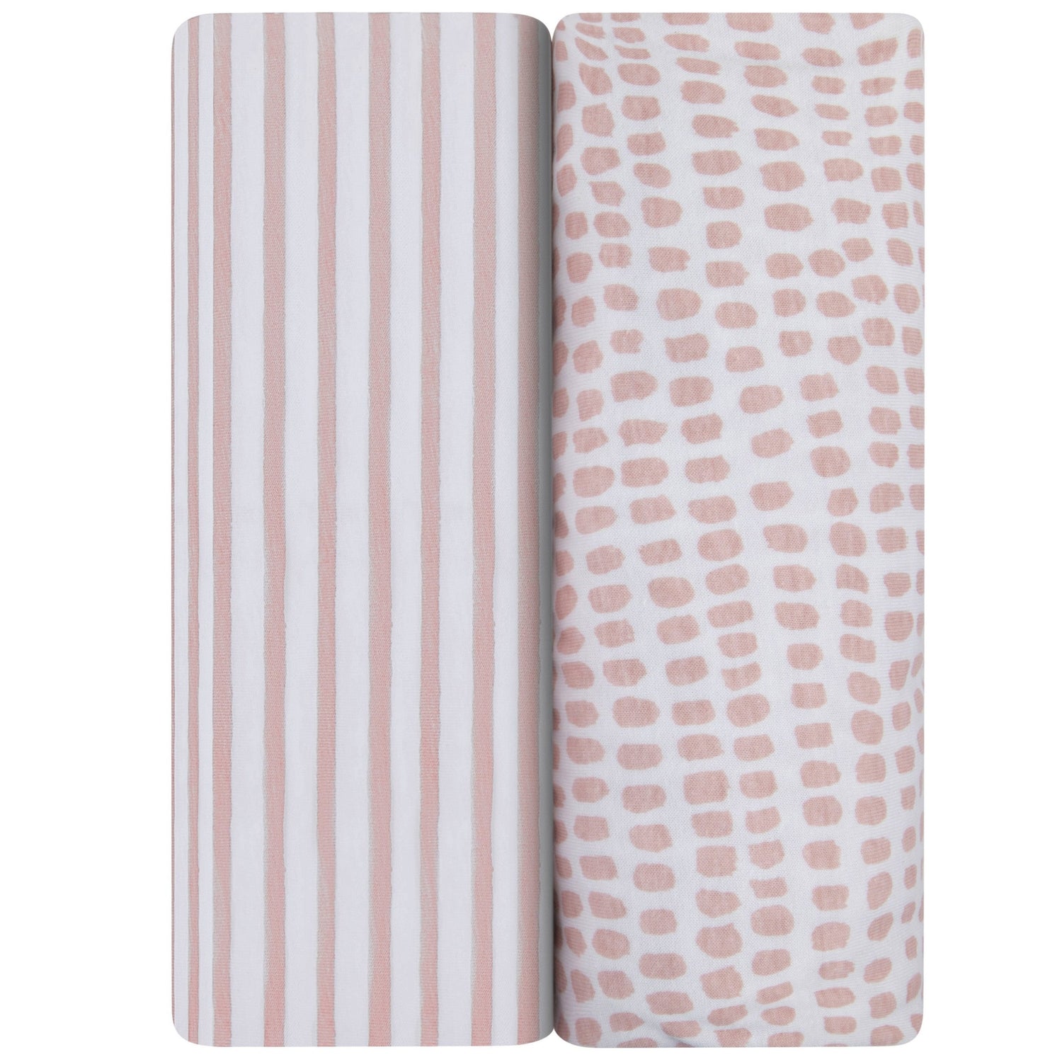 Waterproof Bassinet Sheet Set - Mauve Pink Stripes & Splash