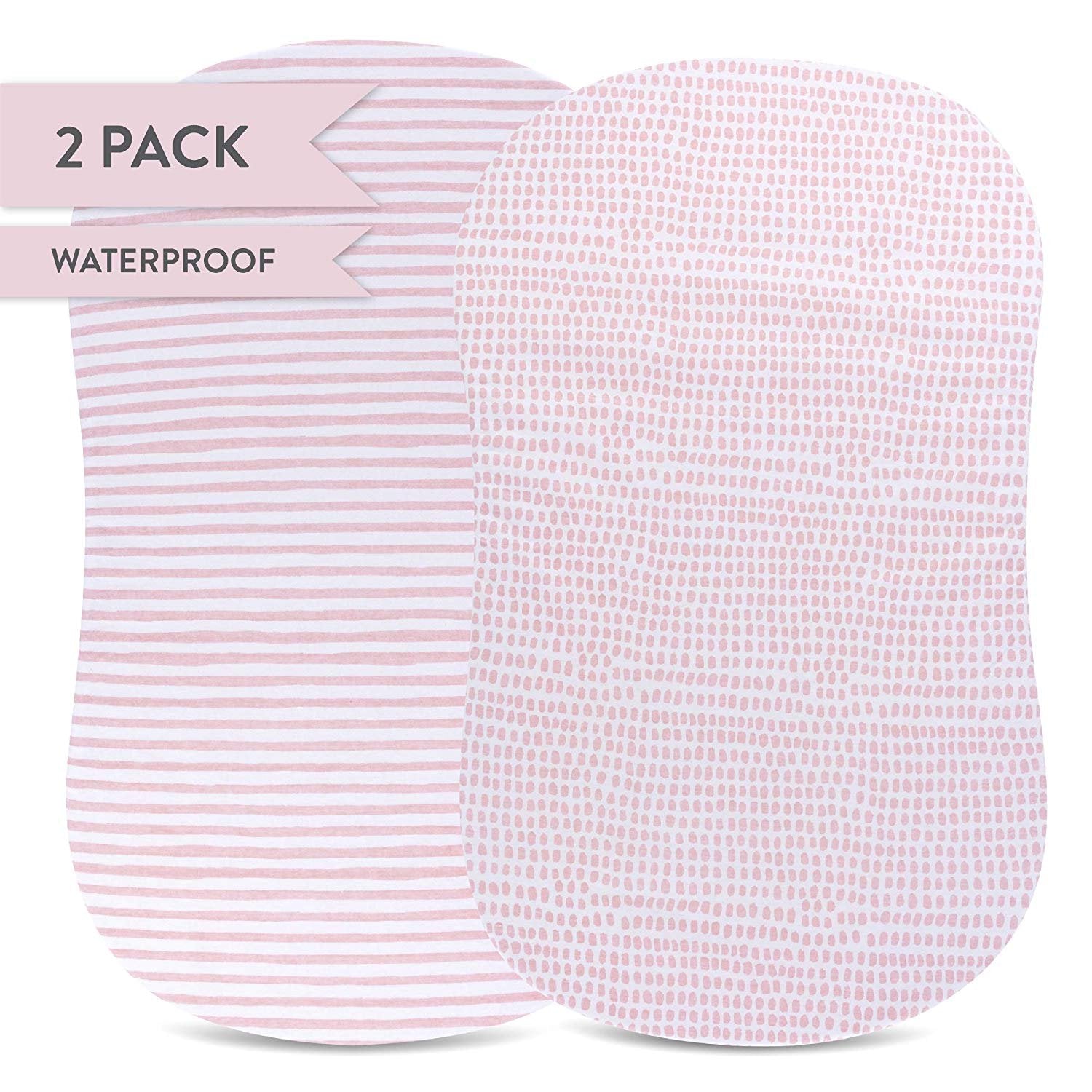 Waterproof Bassinet Sheet Set - Mauve Pink Stripes & Splash - HoneyBug